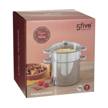 Ce couscoussier en inox de 11 L sera parfait de vos plats préférés. Ce couscoussier peut s'utiliser sur tous les types de feu. Il ne possède pas de revêtement anti-adhérent.
