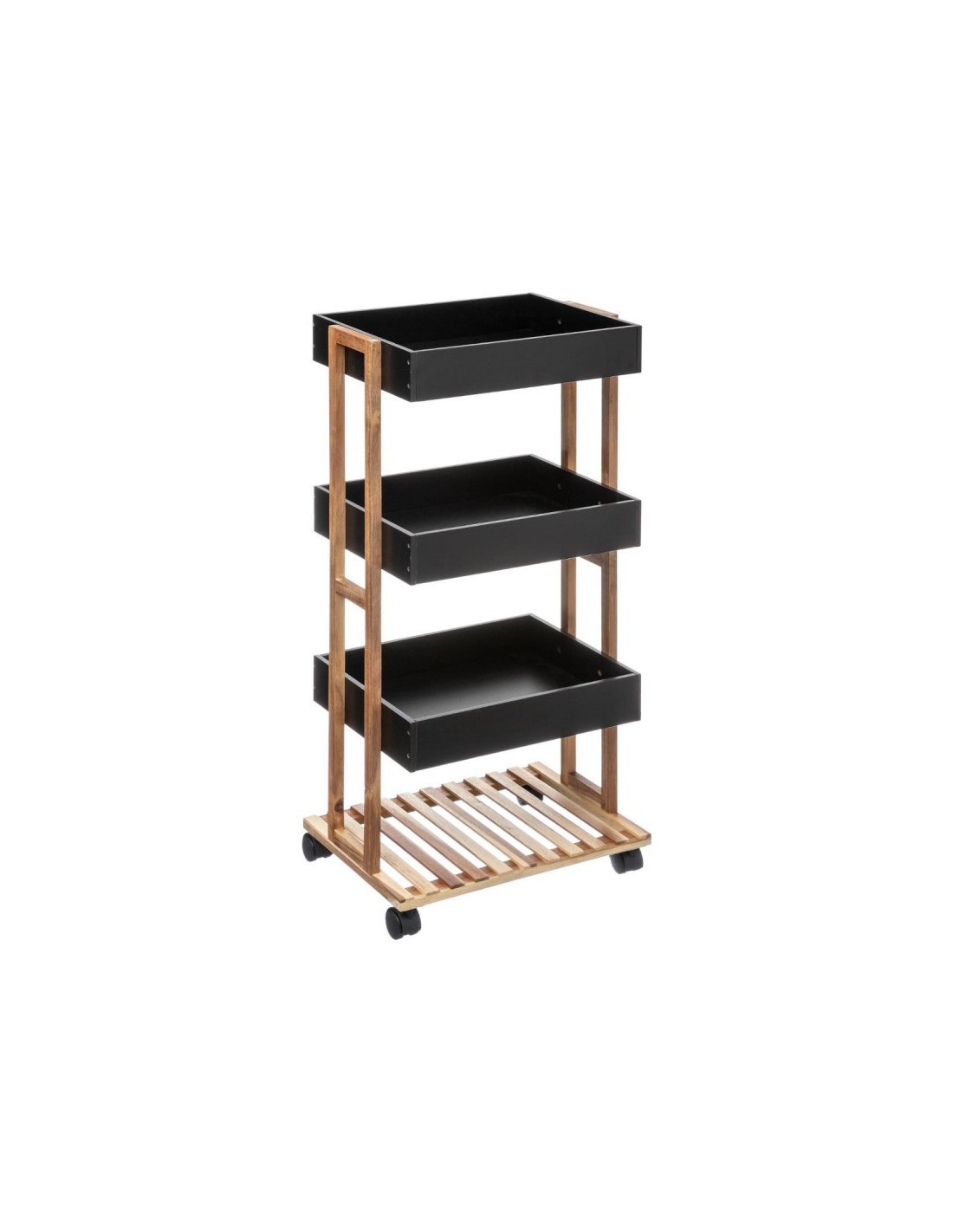 Cette desserte est faite pour faciliter le rangement dans votre salle de bain. Grâce à ces 3 paniers et 1 étagère en bois vous pouvez séparez vos affaires. Aussi très pratique avec ses roulettes pour le mieux guidé.
