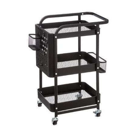 Cette jolie desserte en métal apportera une touche de décoration à votre cuisine. Les 5 rangements : 3 étagères et 2 bacs vous permettront un rangement optimal. Les crochets vous donneront la possibilité d'y mettre des torchons. Les 4 roulettes multidirectionnelles et vous permettra de la déplacer facilement.