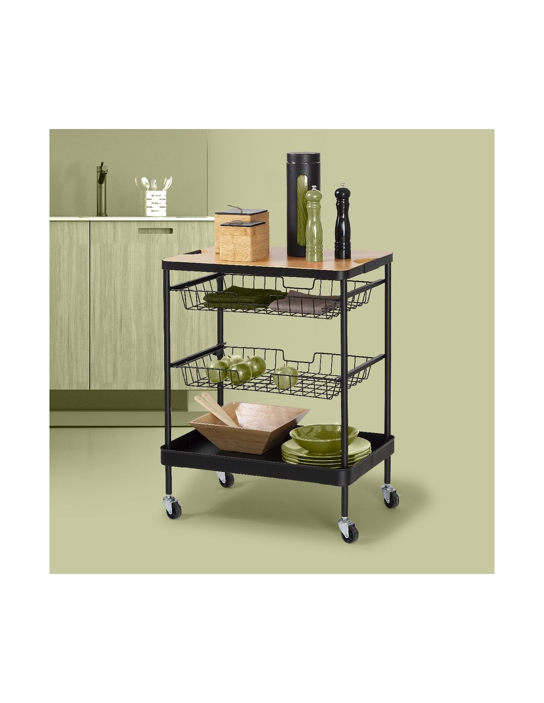 Munie de 2 paniers, cette desserte avec sa structure en métal est principalement conçue pour être utilisée dans une cuisine au style zen.