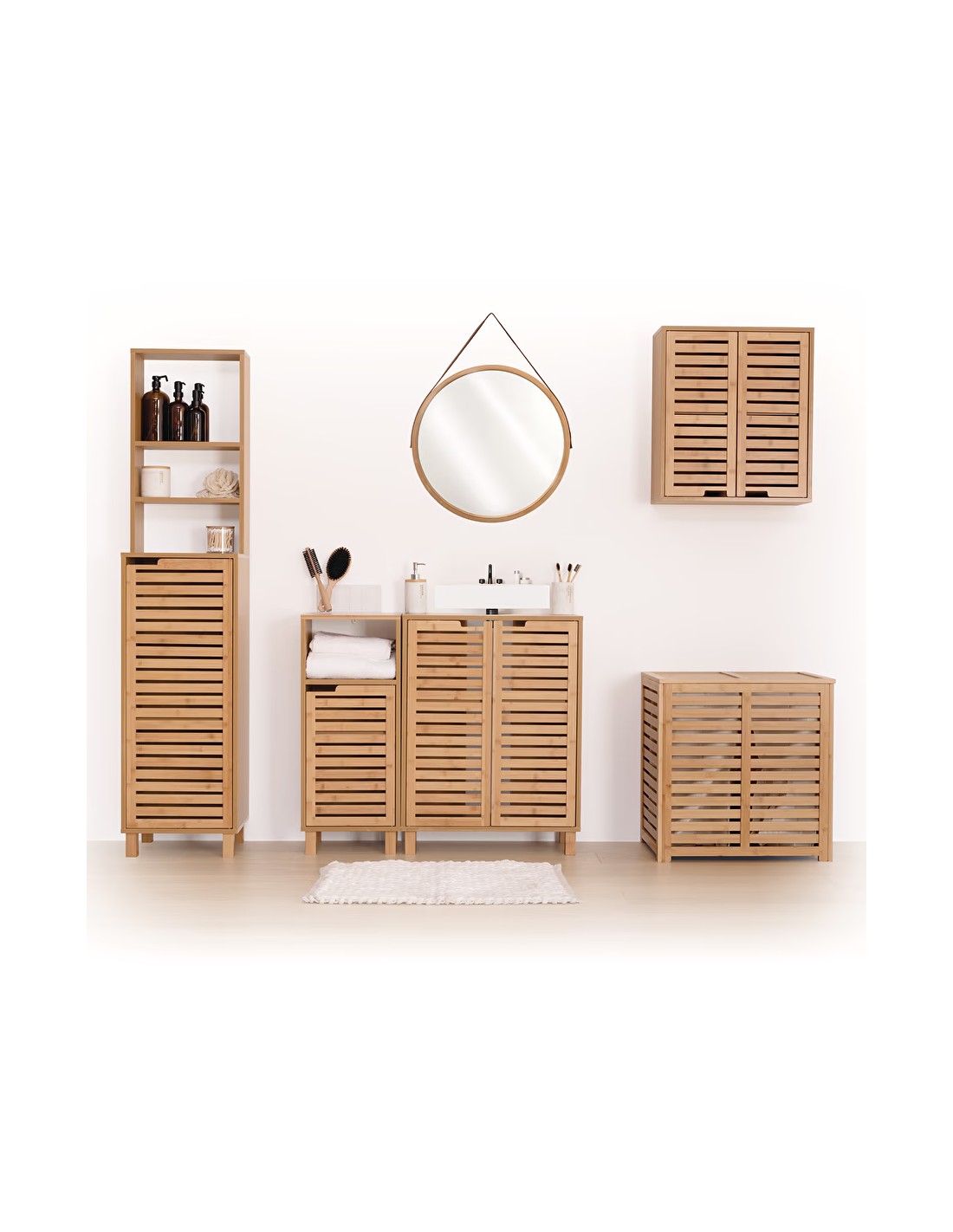 Apportez une touche de sophistication et de rangement optimal à votre salle de bain avec le Meuble Étagère 1 Porte En Bambou Sicela de la marque Five. Conçu spécifiquement pour harmoniser fonctionnalité et esthétique naturelle, ce meuble est l'addition parfaite à tout espace désirant élégance et organisation. Avec ses dimensions pratiques de L. 38 x P. 33 x H. 168 cm, ce meuble étagère tire pleinement parti de la verticalité pour maximiser l'espace de rangement sans encombrer votre salle de bain. Fabriqué entièrement en bambou de haute qualité, il offre non seulement une solidité et une durabilité exceptionnelles mais apporte également une ambiance chaleureuse et apaisante avec son esthétique naturelle. La porte unique de ce meuble cache judicieusement des étagères internes, parfaites pour stocker des articles divers tels que serviettes, produits de beauté, et accessoires de bain, gardant ainsi votre espace organisé et visuellement clair. La structure ouverte au-dessus de la porte offre des étagères supplémentaires pour exposer des éléments décoratifs ou garder à portée de main vos essentiels quotidiens.