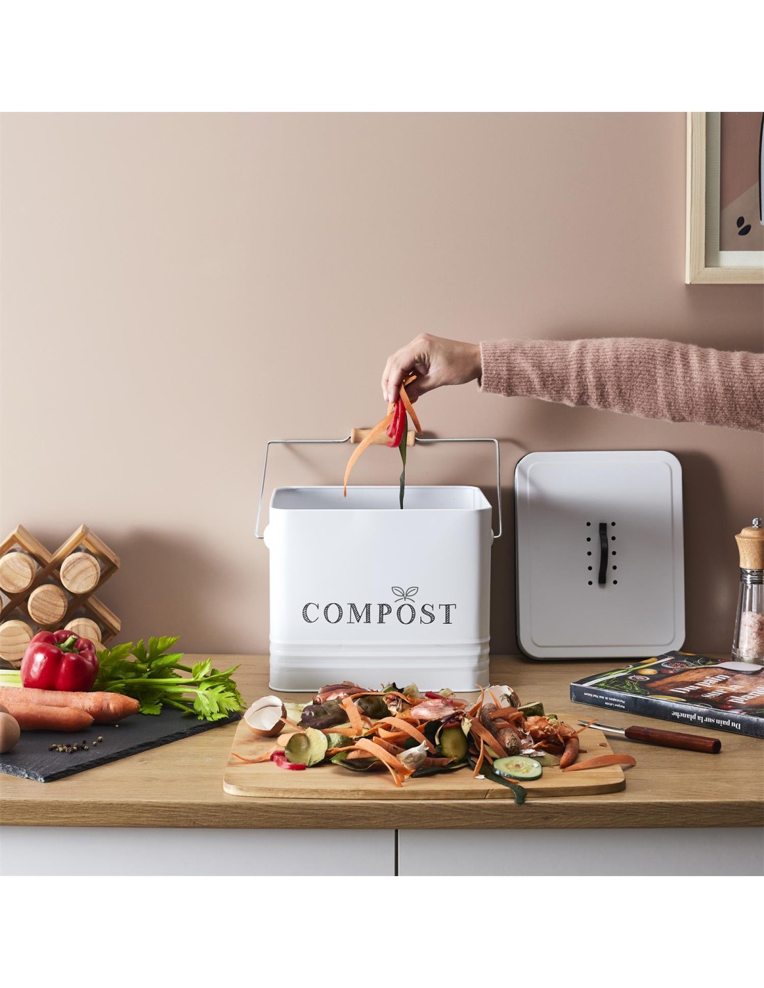 Caractéristiques sur la Poubelle À Composter En Métal 10l Blanc Home Deco Factory :