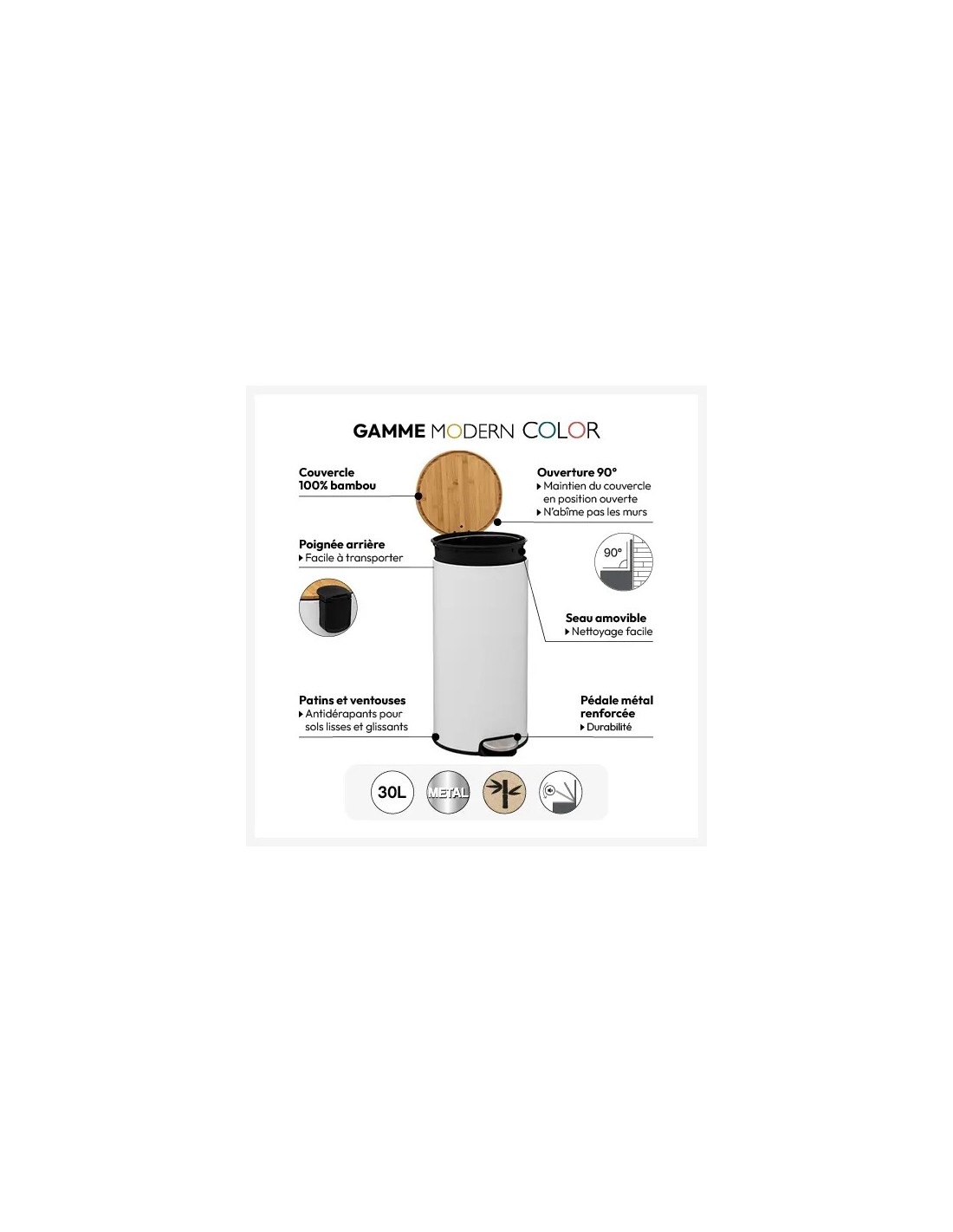 Caractéristiques sur la Poubelle À Pédale Modern 30 L Blanc Five :
