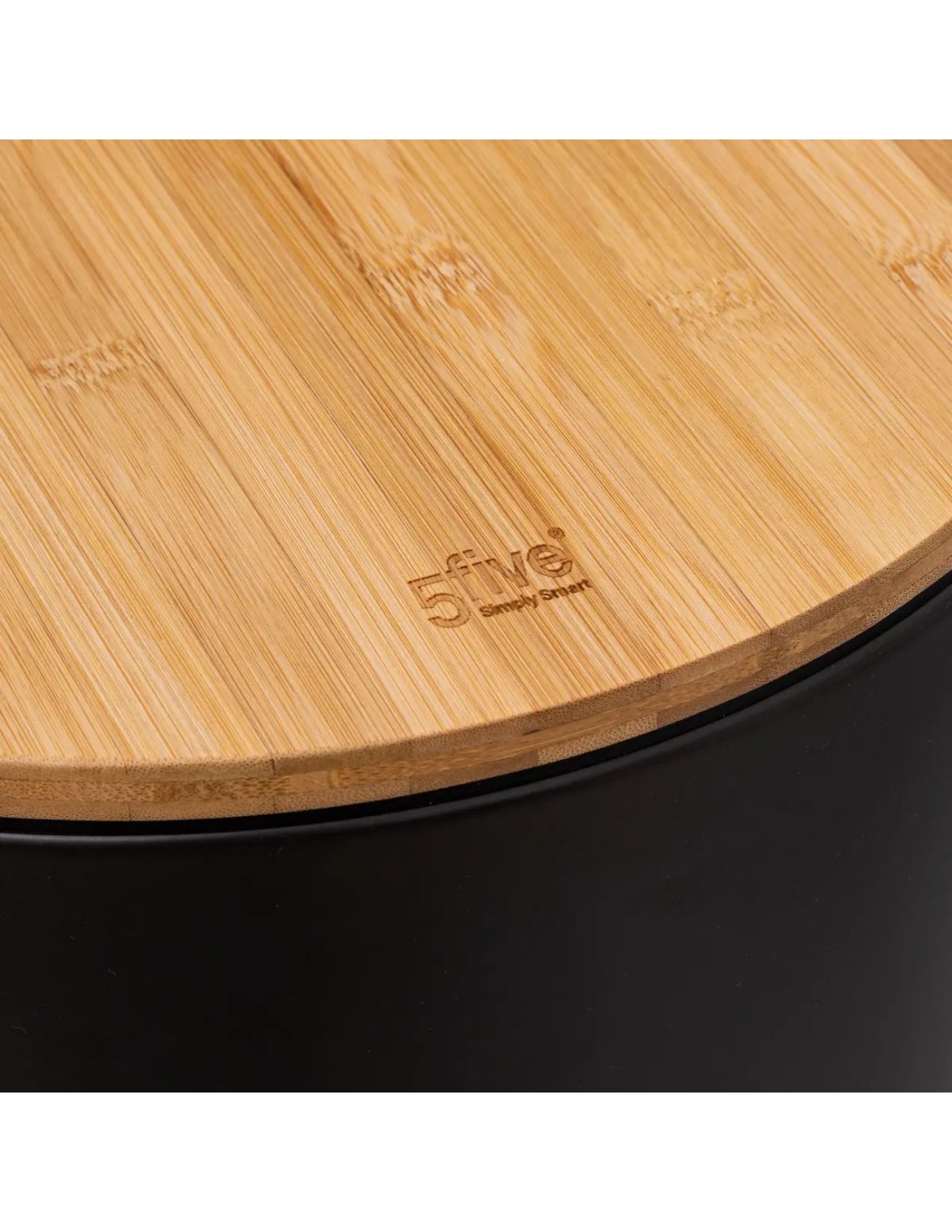 Caractéristiques sur la Poubelle En Métal Couvercle En Bambou Noire Five :