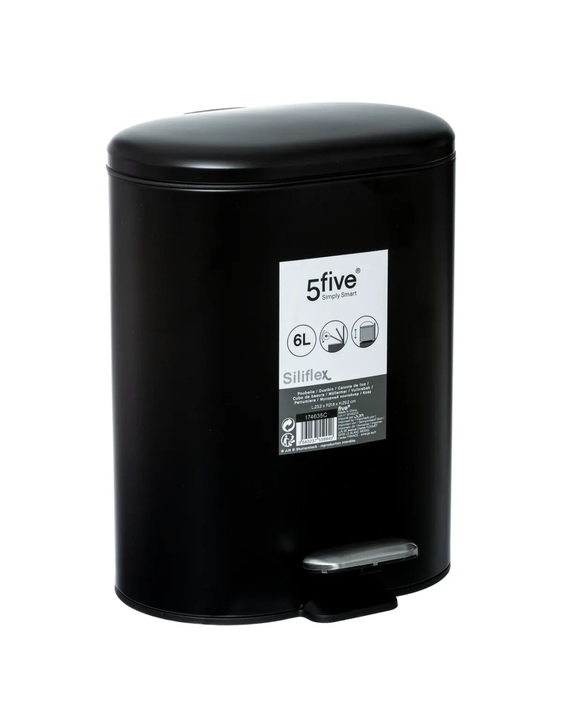 Découvrez la combinaison parfaite de design moderne et de fonctionnalité avec la Poubelle Softclose À Pedale Sili 6L Noir de la marque Five, un accessoire indispensable pour toute cuisine, salle de bain ou bureau soucieux de l'esthétique et de l'hygiène. Compacte et conçue pour s'adapter à des espaces réduits avec des dimensions de L. 24.2 x P. 15.5 x H. 30.5 cm, cette poubelle est parfaite pour les zones où l'espace est limité mais où l'efficacité ne doit pas être compromise. La hauteur avec le couvercle ouvert atteint 46 cm, permettant un accès facile sans nécessiter de se pencher trop profondément. Construite en métal avec une finition en acier inoxydable noir, cette poubelle combine durabilité et style. L'acier inoxydable n'est pas seulement élégant ; il est aussi résistant à la corrosion et facile à nettoyer, ce qui le rend idéal pour les environnements susceptibles d'être exposés à l'humidité ou aux éclaboussures. La fonctionnalité Softclose garantit une fermeture douce et silencieuse du couvercle, parfait pour maintenir une ambiance calme dans votre espace. La pédale robuste permet une ouverture mains libres, réduisant la propagation des germes et augmentant l'hygiène autour de votre environnement de vie ou de travail.