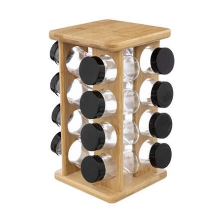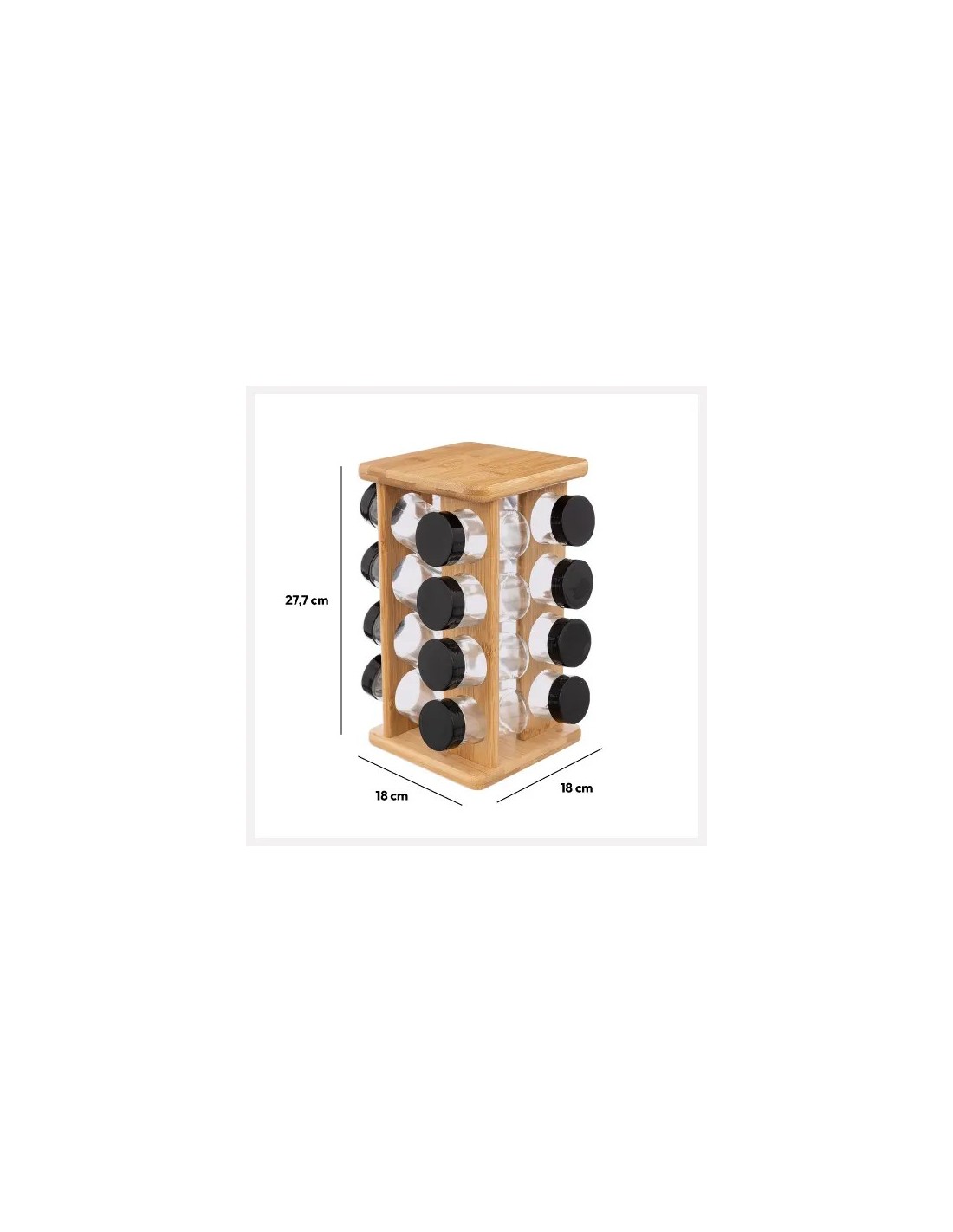 Ce présentoir à épices Rotatif 16 Pots Bambou vous permettra de gagner de la place en cuisine en rangeant 16 différentes épices à la verticale ! Grâce à son support rotatif, vous aurez accès à toutes vos épices très facilement et pourrez sélectionner ce dont vous avez besoin, très rapidement ! Confectionné en bambou, ce Présentoir vous assure une stabilité et une durabilité dans le temps exceptionnelle grâce à son matériau très résistant ! Ce présentoir est livré avec 16 pots en verre. Il vous aidera gagner de place et utilisation facile grâce à ce support. Les pots en verre transparent mettent en valeur le contenu. A la différence d'un bois traditionnel, le bambou est un matériau très résistant.