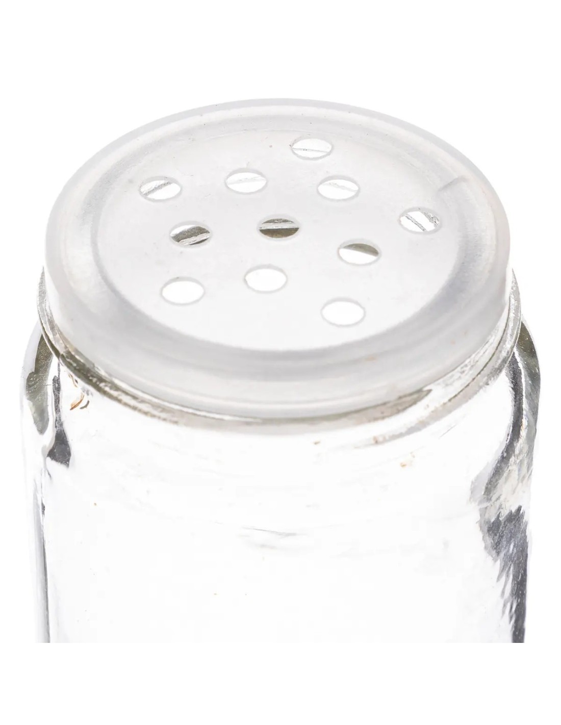 Sur chaque pot : couvercle en plastique à visser, blanc, et cache intermédiaire permettant de saupoudrer les épices (membrane percée de trous).