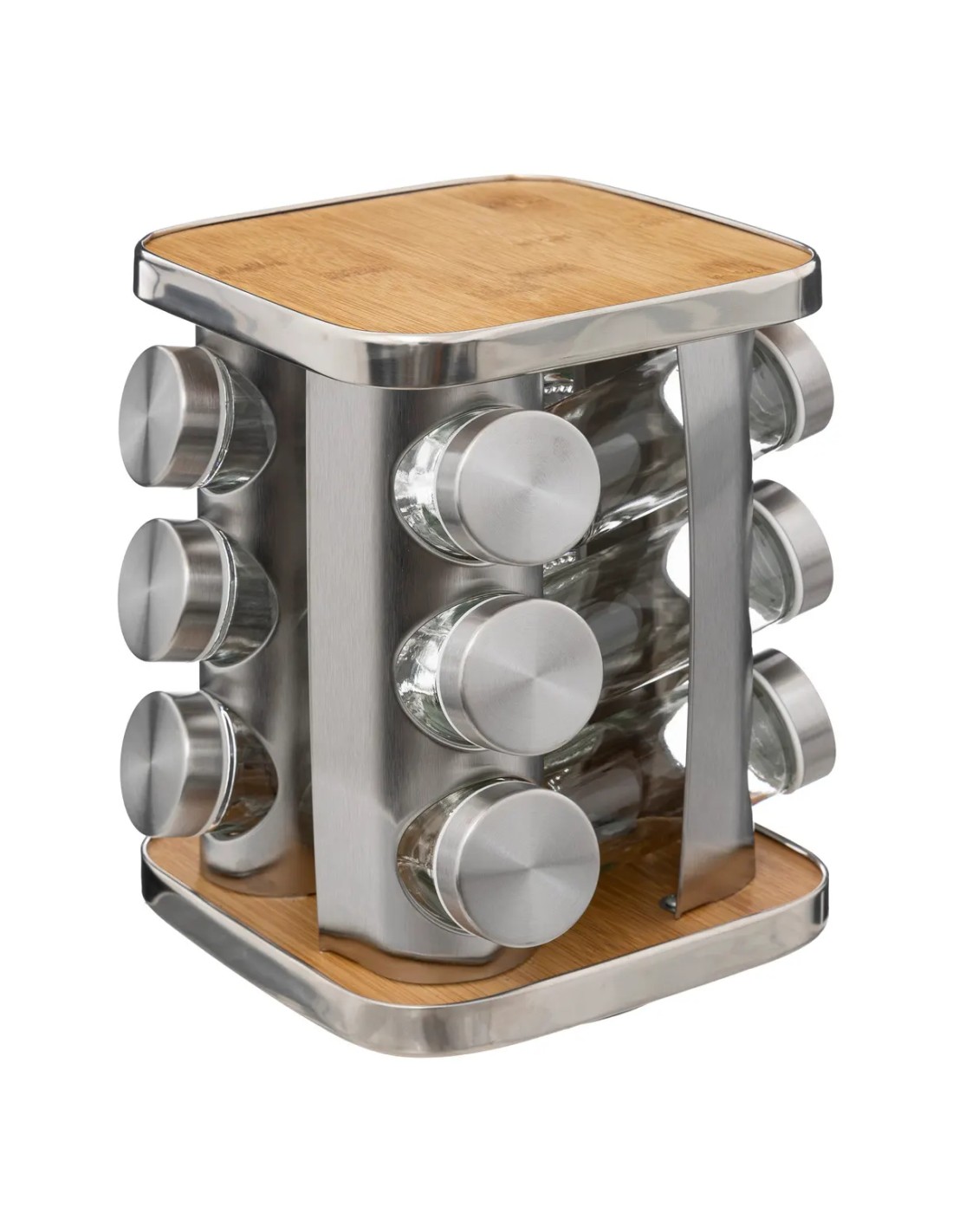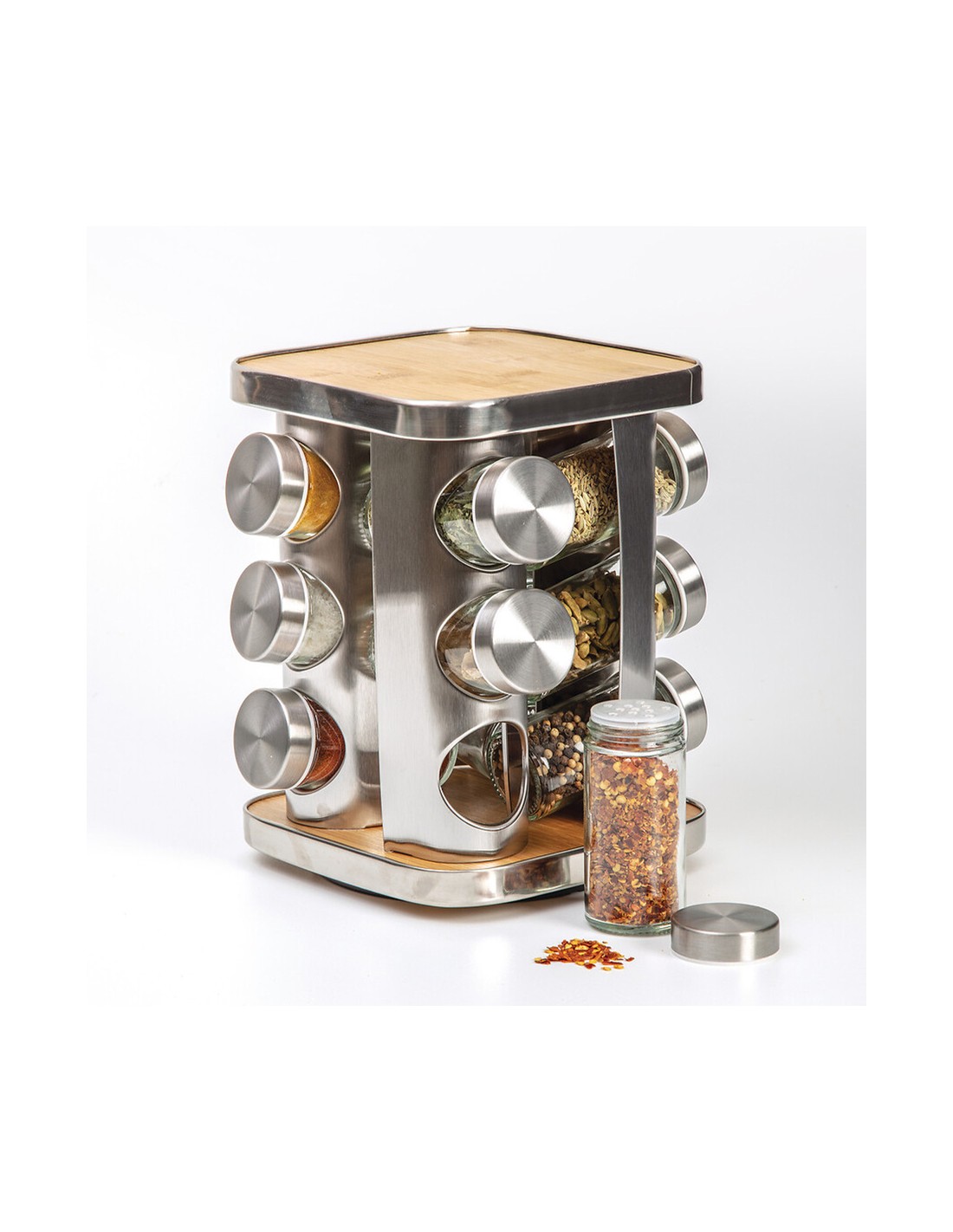 Présentoir Épices Rotatif Bambou 16 Pots Secret De Gourmet