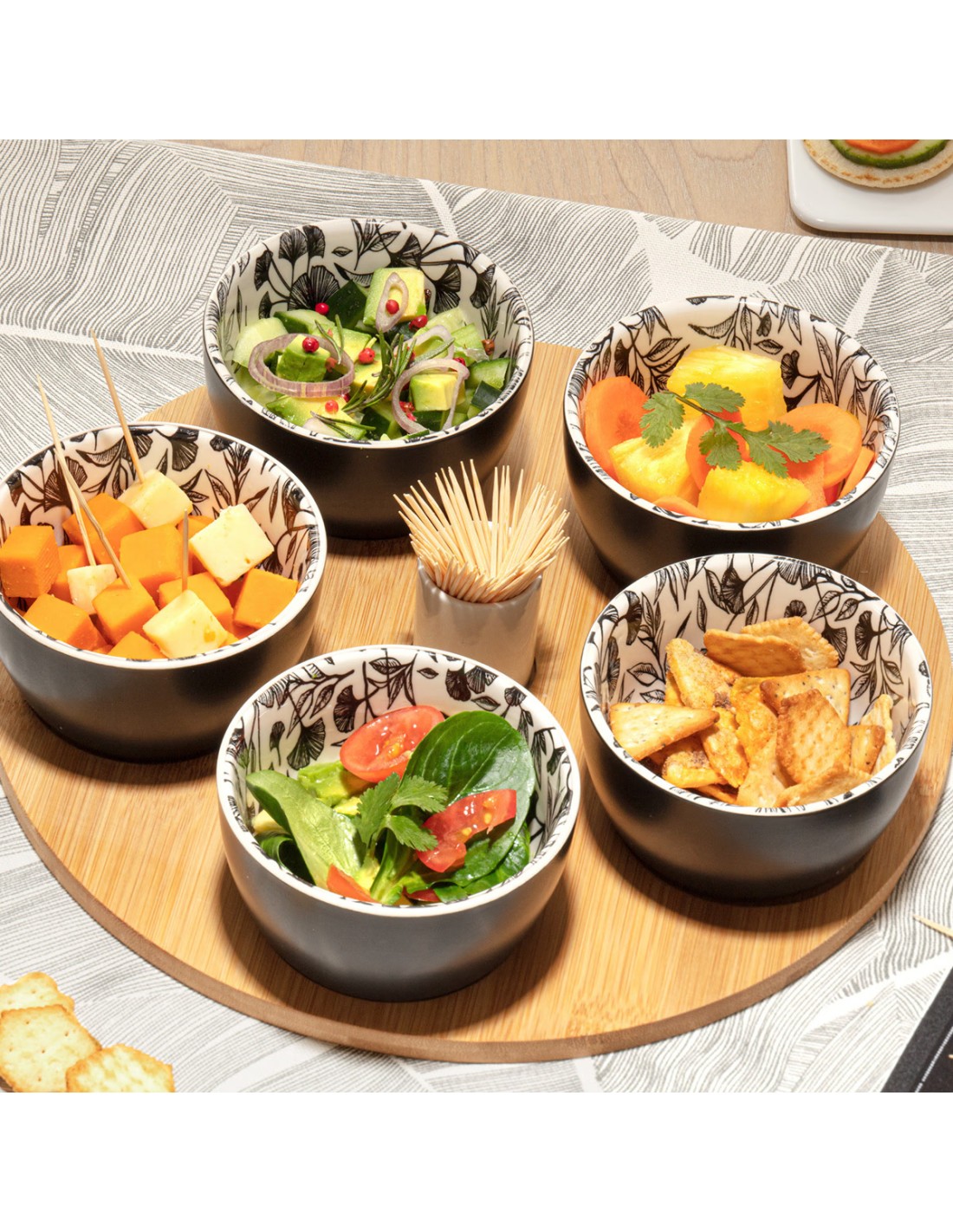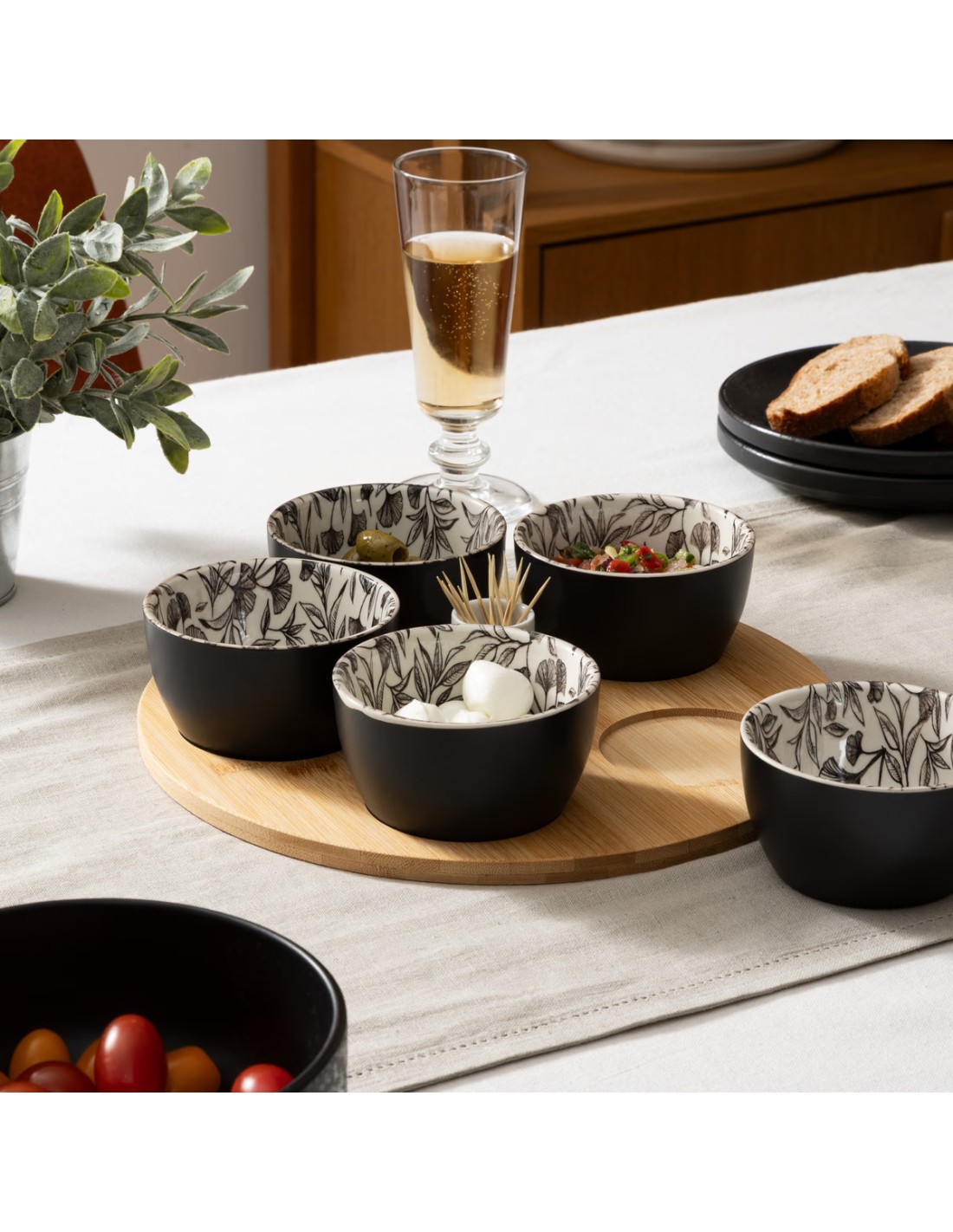 Sublimez vos moments de convivialité avec le Service Apéritif White Floral d'Atmosphera! Idéal pour les réceptions ou les soirées détendues, cet ensemble de 7 pièces apporte une touche d'élégance florale à vos présentations de snacks et apéritifs, transformant chaque occasion en une expérience raffinée. Motifs floraux délicats sur un fond blanc pur, ajoutant une touche de fraîcheur et d'élégance à votre table. Comprend six bols pour apéritifs et un plateau central, parfait pour présenter une variété de snacks, olives, noix, et sauces. Les bols sont disposés autour d'un plateau central pour un accès facile et une présentation harmonieuse. Idéal pour les apéritifs, les desserts, ou comme élément décoratif sur votre table ou buffet.