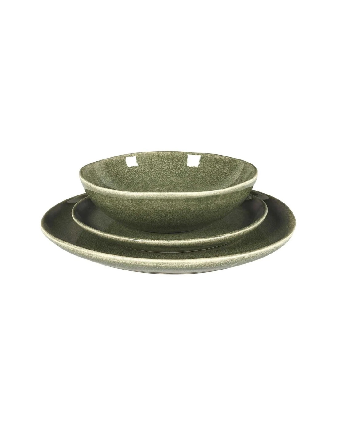 Plongez dans un univers de grâce et de nature avec le Service de Table 18 Pièces en Grès Vert de Home Deco Factory, une collection qui apporte une bouffée d'air frais à vos repas. Chaque pièce de cet ensemble n'est pas seulement un récipient pour vos délices culinaires ; elle est une célébration de la beauté rustique et de l'élégance durable, conçue pour enrichir vos moments à table. Inspiré par la richesse et la tranquillité de la nature, le grès vert de cet ensemble évoque les nuances sereines des forêts anciennes et des prairies luxuriantes. Cette couleur, à la fois profonde et apaisante, ajoute une dimension visuelle unique à votre table, invitant à la détente et à la convivialité. Cet ensemble comprend tout ce dont vous avez besoin pour accueillir vos invités ou pour profiter d'un repas familial : des assiettes plates pour les entrées et plats principaux, des assiettes à dessert pour les fins gourmandes, et des bols pour les soupes ou les céréales matinales. Sa polyvalence en fait un choix parfait pour toute occasion, du petit déjeuner au dîner.
