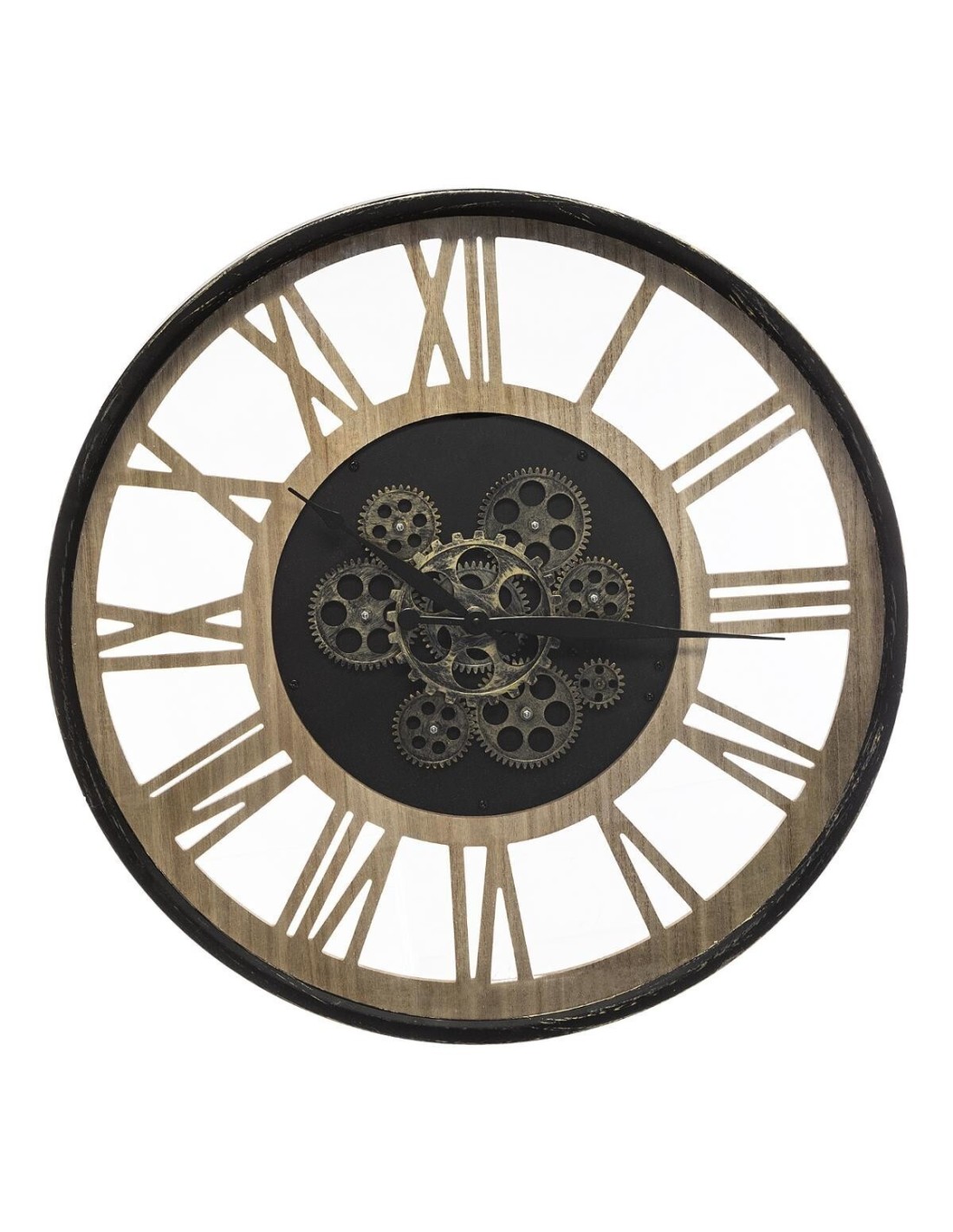 Cette horloge murale est composée d'un cadre en fer, d'une vitre en verre, de bois MDF et plastique EVA avec un engrenage en polypropylène et une partie électrique en plastique ABS.