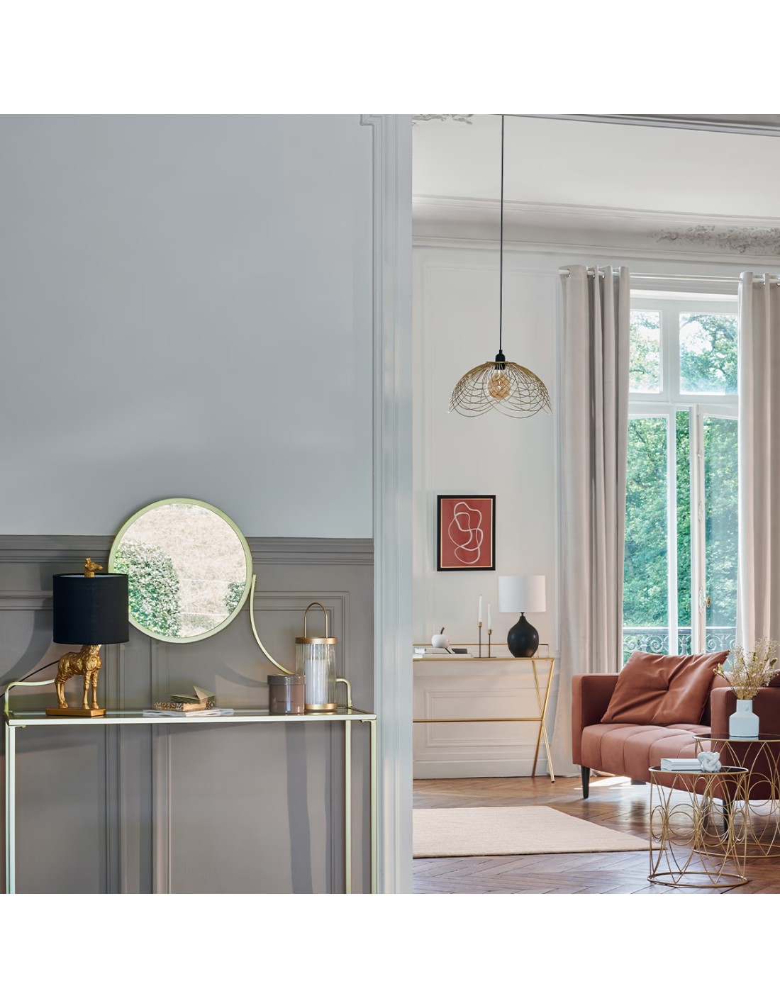 Illuminez votre intérieur avec la Suspension en Métal Carrie D38 Doré d'Atmosphera, un luminaire qui combine brillance et design contemporain pour un éclairage qui ne passe pas inaperçu. Ce plafonnier doré n'est pas seulement une source de lumière, mais un véritable bijou décoratif qui enrichit l'esthétique de votre espace de vie. Dotée d'un fini doré luxueux et d'une forme géométrique captivante, cette suspension apporte une touche de glamour moderne à tout espace, qu'il s'agisse d'un salon, d'une salle à manger ou d'un hall d'entrée. Avec un diamètre de 38 cm, ce luminaire projette une lumière chaude et accueillante, parfaite pour créer une ambiance cosy et invitante. Comprend tout le nécessaire pour une installation sans tracas, permettant une mise en place rapide et simple qui transforme instantanément votre espace. Sa couleur dorée et son design élégant en font un excellent choix pour divers styles décoratifs, de l'industriel chic au classique moderne. La Suspension en Métal Carrie D38 Doré est idéale pour ceux qui recherchent un éclairage qui fait également office de pièce maîtresse décorative. Son allure riche et élégante élève instantanément le style de n'importe quelle pièce, tout en fournissant une lumière qui enchante et invite à la détente. Ajoutez un point focal brillant à votre décoration avec la Suspension en Métal Carrie D38 Doré d'Atmosphera. Parfait pour ceux qui apprécient le luxe discret et l'ambiance chaleureuse, ce luminaire est sûr de transformer votre espace avec son éclat sophistiqué et son style intemporel.