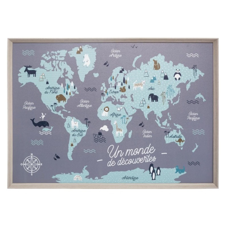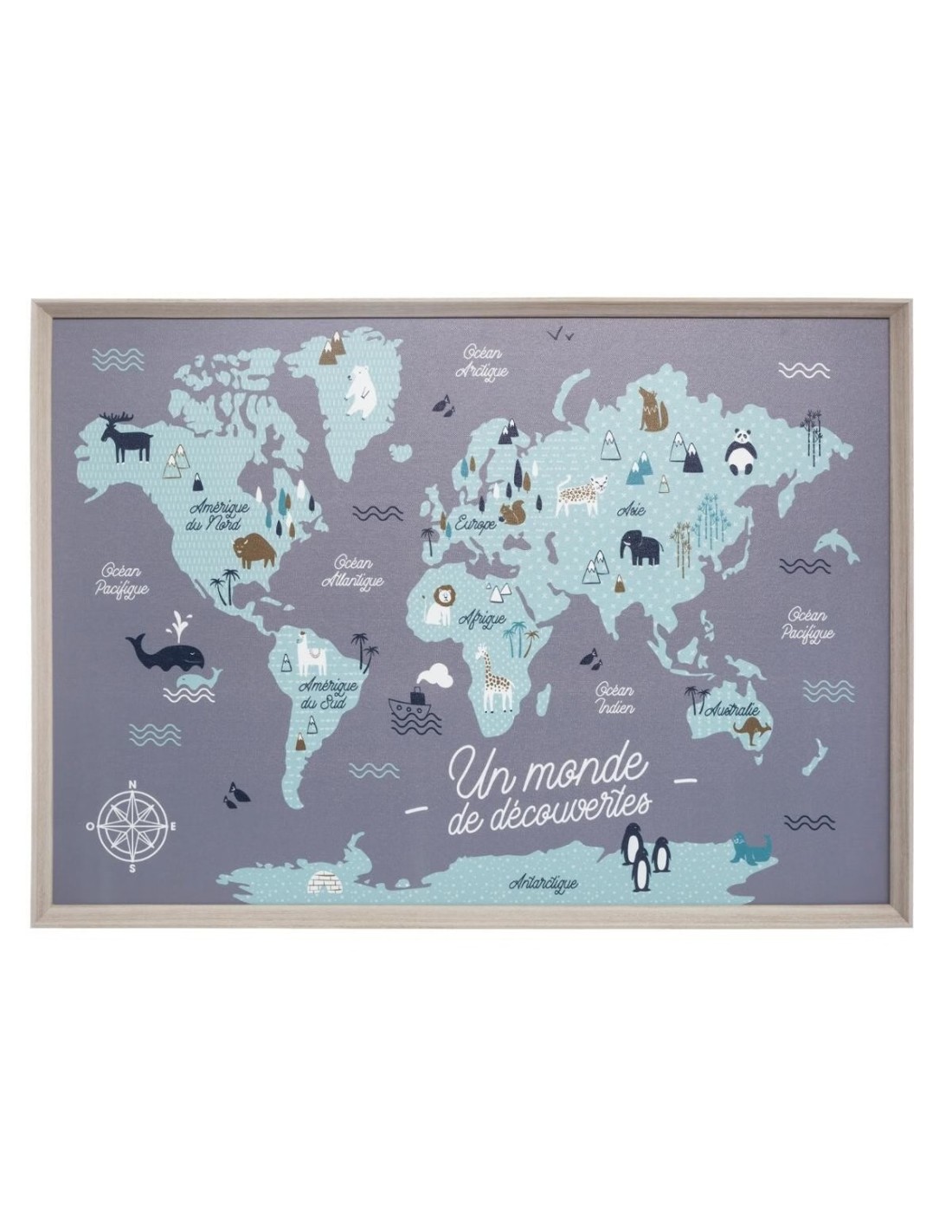 Caractéristiques sur la Tableau Imprimée Encadrée Carte Du Monde 50x70 Atmosphera For Kids :