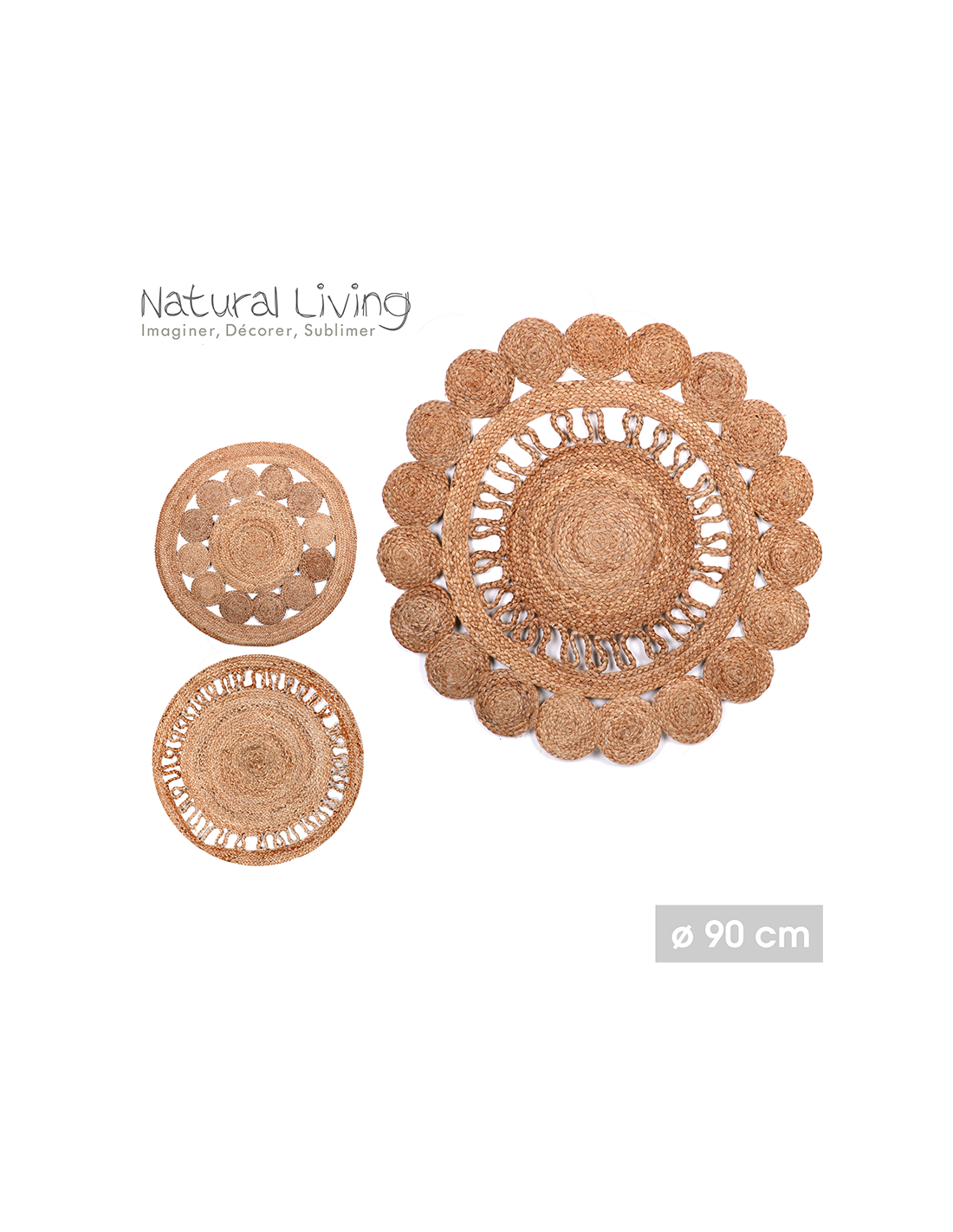 Élevez l'élégance de votre espace avec le Tapis en Jute D90 Modèle 2 Naturel d'Atmosphera, un accessoire de sol qui marie parfaitement beauté naturelle et robustesse artisanale. Ce tapis rond, confectionné avec soin en fibres de jute durables, est un véritable atout pour tout intérieur soucieux de l'environnement et du style. Ce tapis séduit par son aspect naturel qui apporte une ambiance chaleureuse et accueillante à toute pièce. Sa texture tressée et sa teinte naturelle se fondent aisément dans différents décors, ajoutant une touche de raffinement rustique sans alourdir l'espace. Tissé à partir de jute de haute qualité, le Tapis Modèle 2 est conçu pour résister à l'épreuve du temps. Sa composition en fibres naturelles lui confère une grande résistance aux passages fréquents, faisant de lui un choix parfait pour des zones à fort trafic comme le salon ou le hall d'entrée. Au-delà de son allure attrayante, ce tapis offre une texture agréable qui enchante les pieds. Doux au toucher, il améliore le confort de votre espace de vie, vous invitant à marcher pieds nus et à ressentir la douceur naturelle du jute.