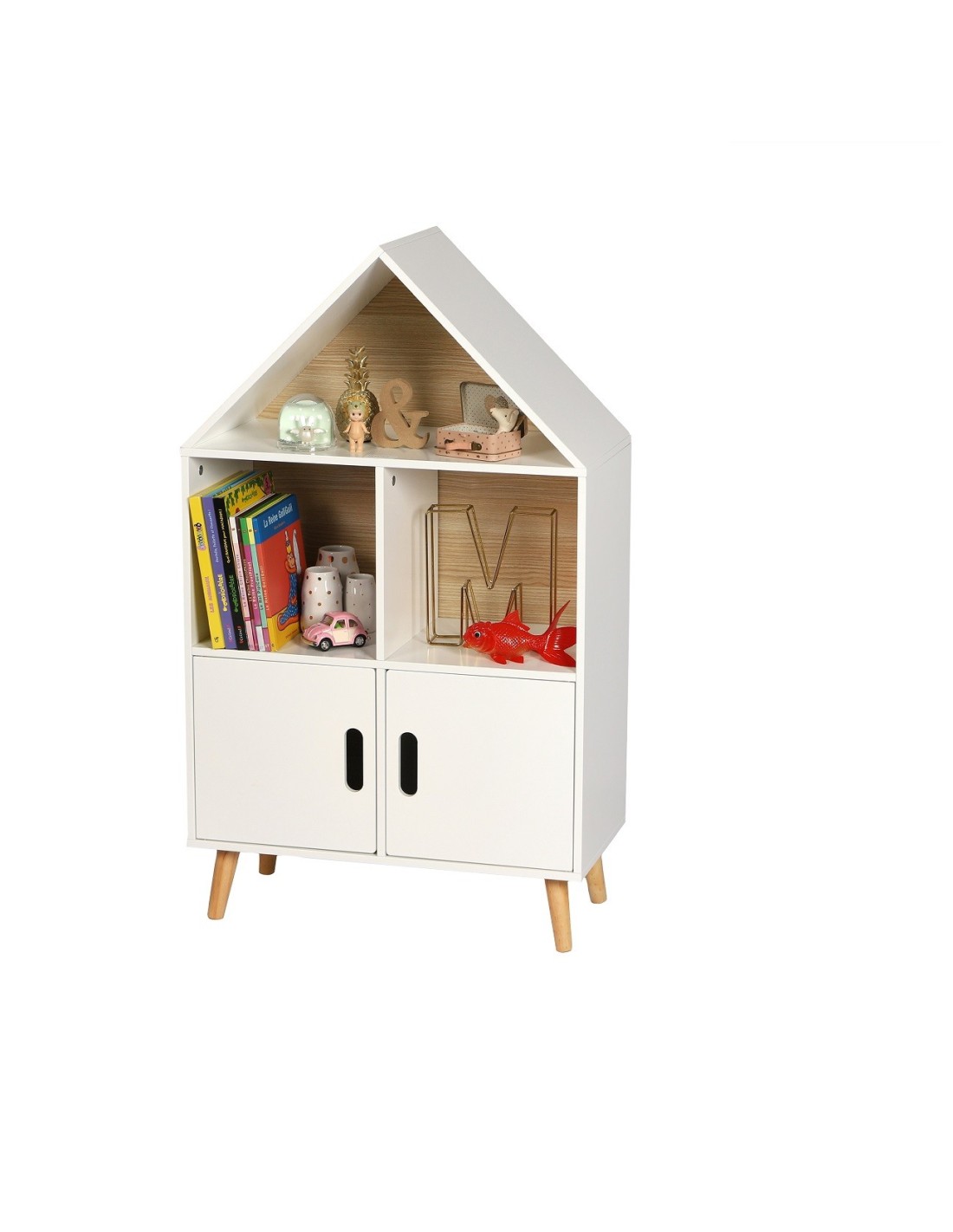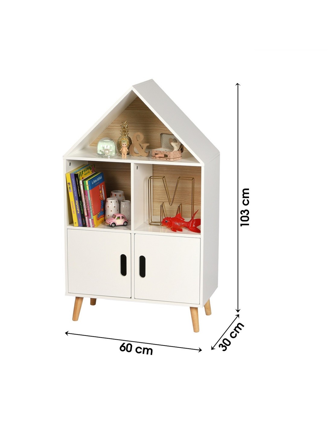 Cette bibliothèque pour enfants est parfaite pour ranger les livres, les jouets et bien d'autres choses encore. Avec ses 5 compartiments, ses 2 portes et son design en forme de maison de couleur blanche, elle est élégante dans n'importe quelle maison. Vous pouvez ranger tous les livres de votre enfant dans notre bibliothèque pour enfants. Elle est dotée de cinq compartiments, de deux portes et a la forme d'une maison. Son design blanc permet de l'assortir facilement à tous les types de meubles de la maison.