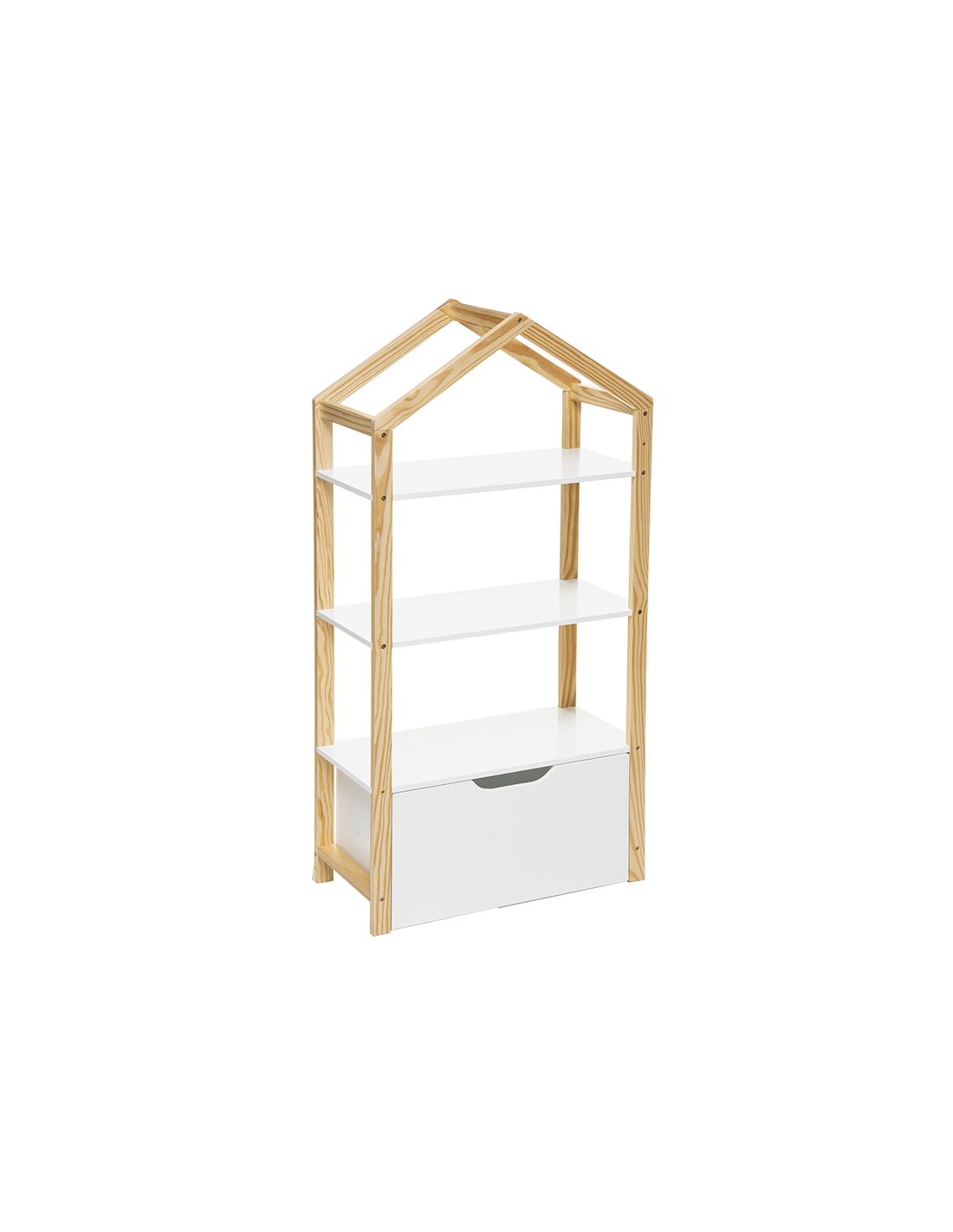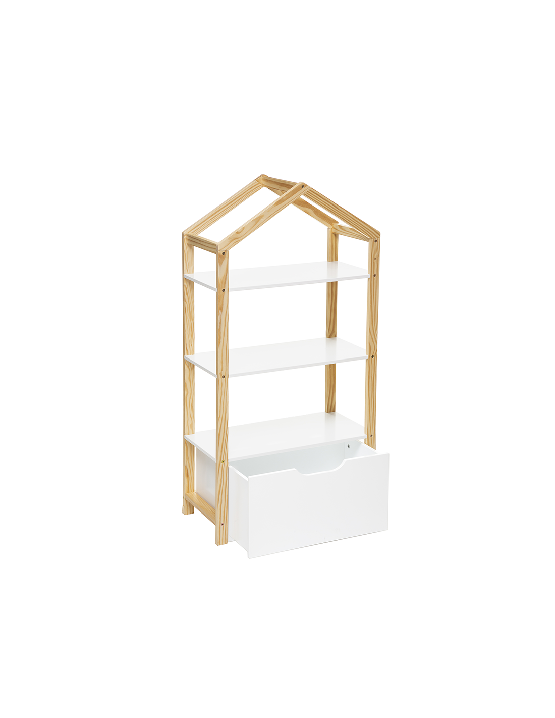 Cette bibliothèque en forme de maison avec deux étages et un tiroir pour une meilleure organisation et classement des affaires de votre enfant. Elle s'intègre facilement dans la chambre de votre enfant.