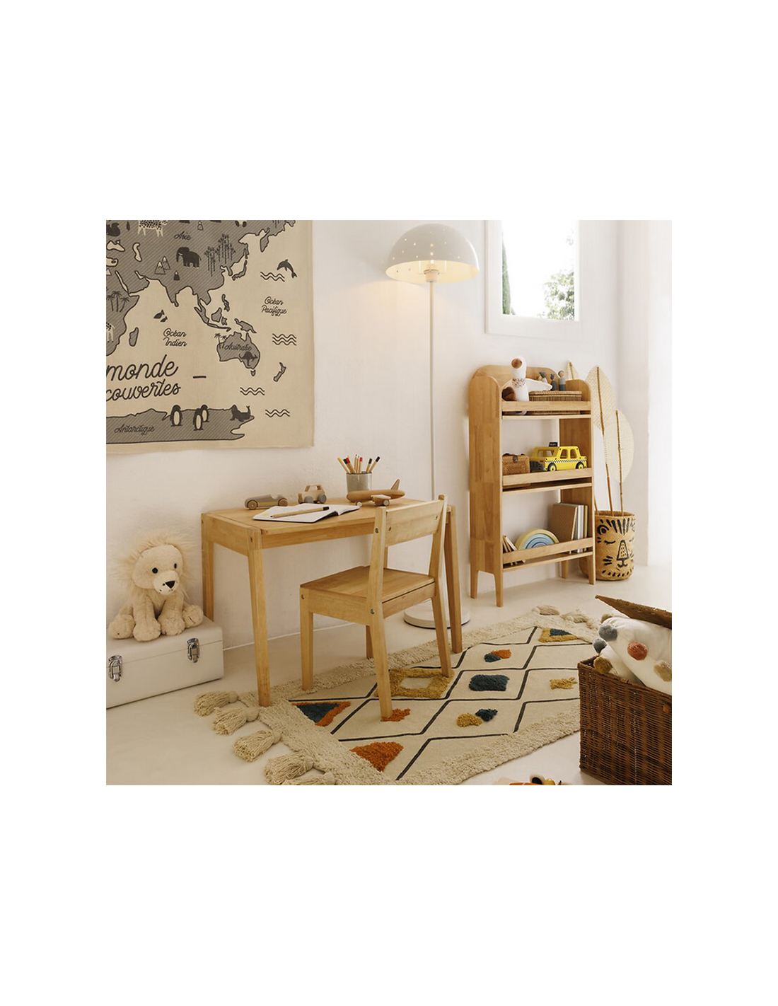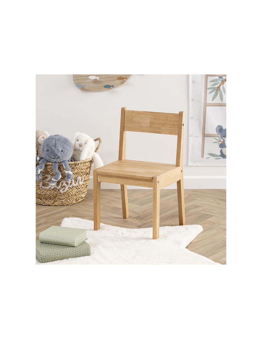 Cette chaise en bois est le compagnon idéal de votre enfant. Elle est fabriquée en bois d'hévéa, qui est une ressource renouvelable et donc respectueuse de l'environnement. Cette chaise offre un endroit solide et confortable pour s'asseoir pendant que votre petit joue ou apprend.