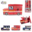 Ce pouf est idéal pour les chambres d'enfants ou les salle de jeux. Il possède une double utilité : il offre deux coffres de rangement et il sert également de pouf. Ce meuble, grâce à son design de véhicule, amuse et plait à tous les chérubins. Son imprimé et sa forme ont un coté ludique et ils invitent à ranger les jouets à l'intérieur pour ne plus qu'ils ne trainent. Sa double utilité est très pratique, plus besoin d'avoir plusieurs meubles, ce véhicule suffit. Ce coffre à jouet a une grande capacité et il est constitué de deux bacs de rangement. Tous les jouets trouvent leur place à l'intérieur. Le pouf est pliable pour un rangement facile dans une armoire, une fois plus utilisé. C'est un produit indispensable pour amuser filles et garçons tout en habillant une chambre.