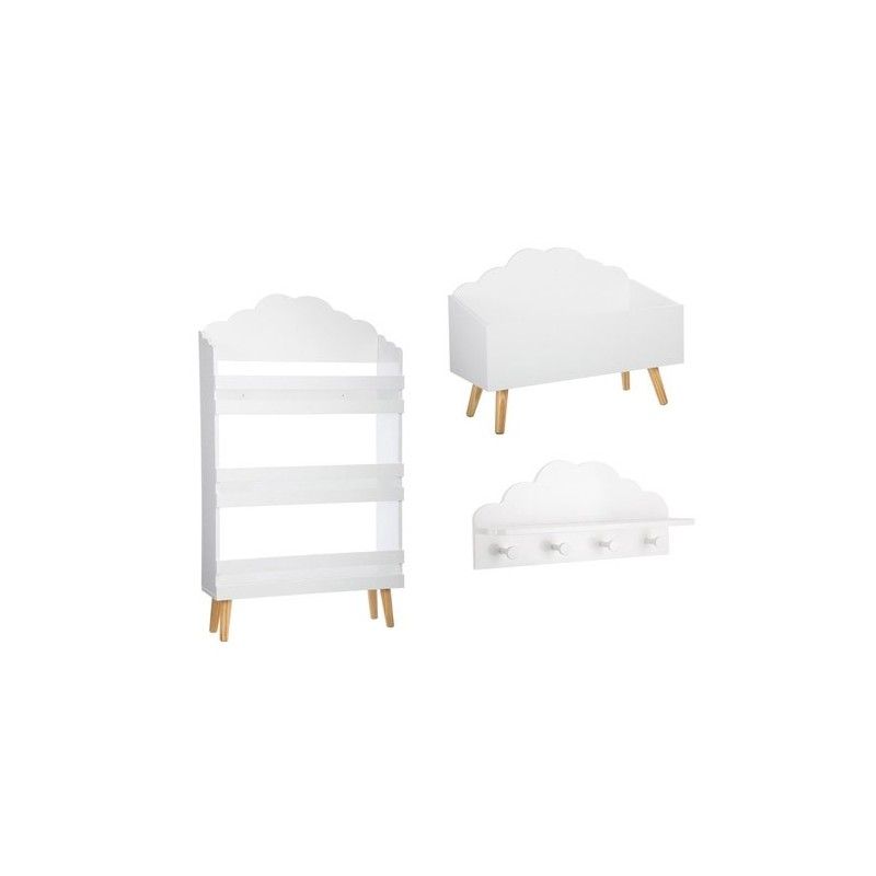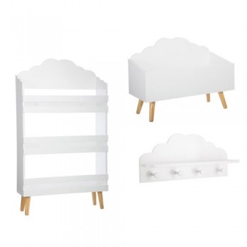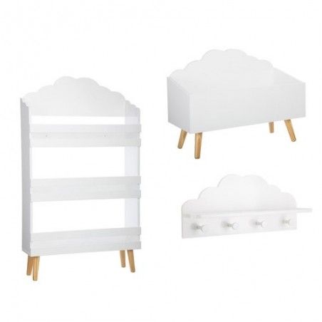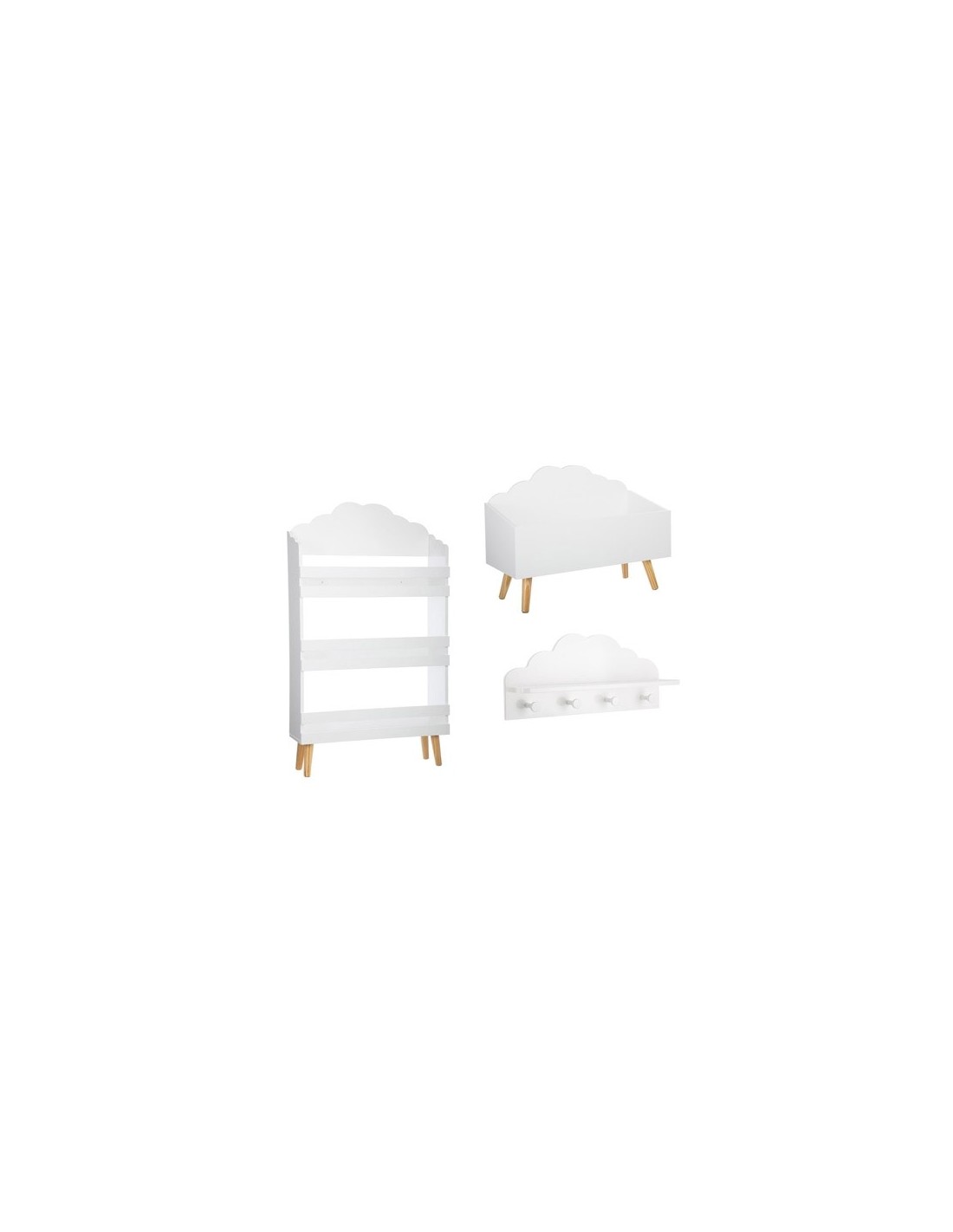 Coffre à jouets nuage blanc + Bibliothèque nuage blanc + Patère nuage blanc