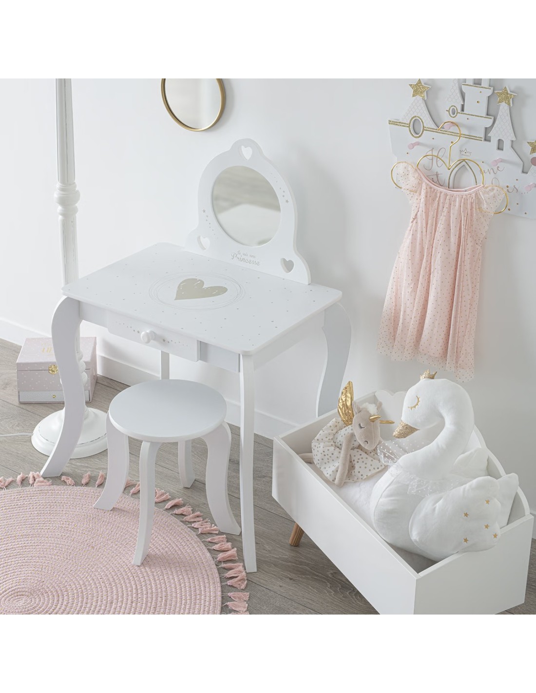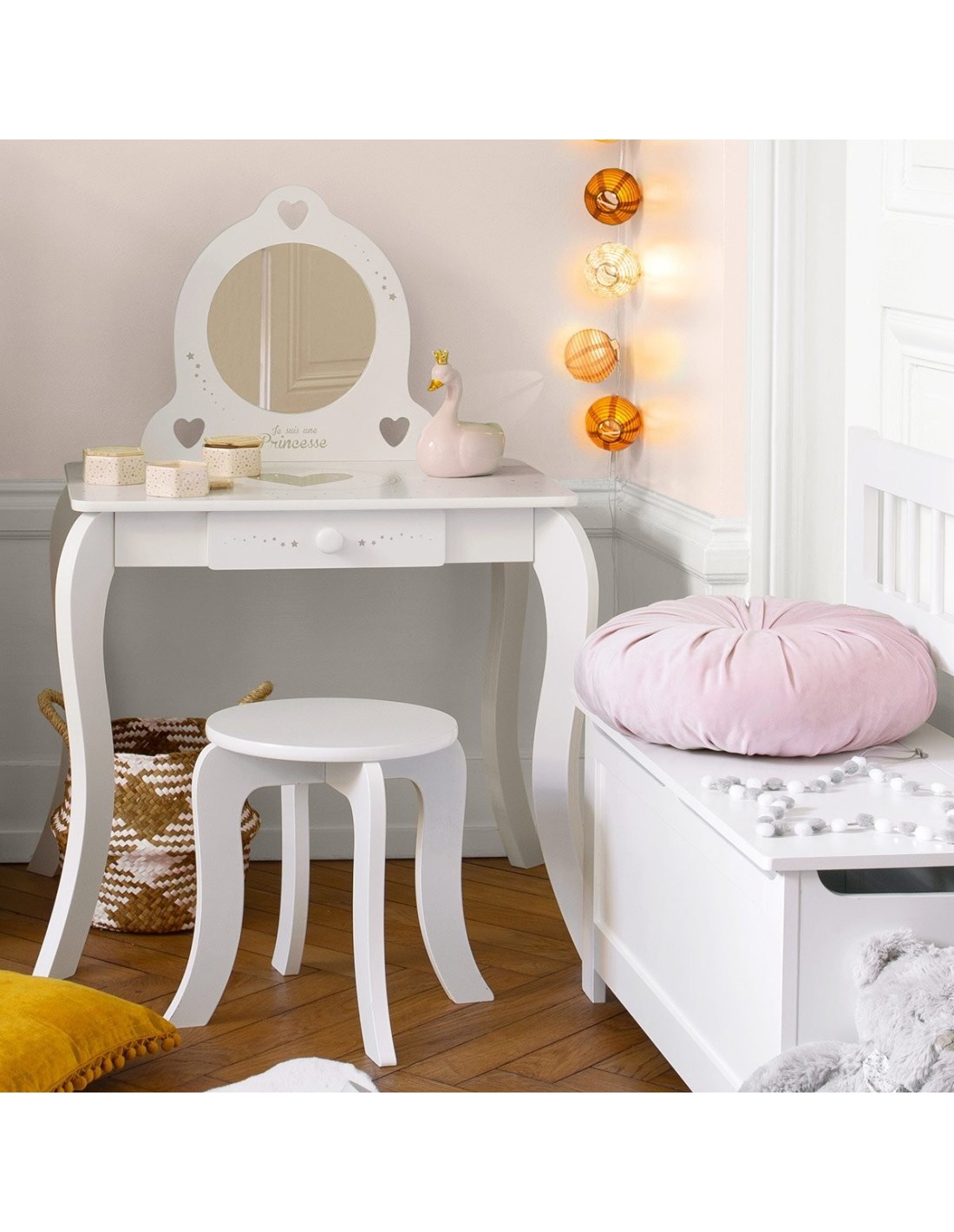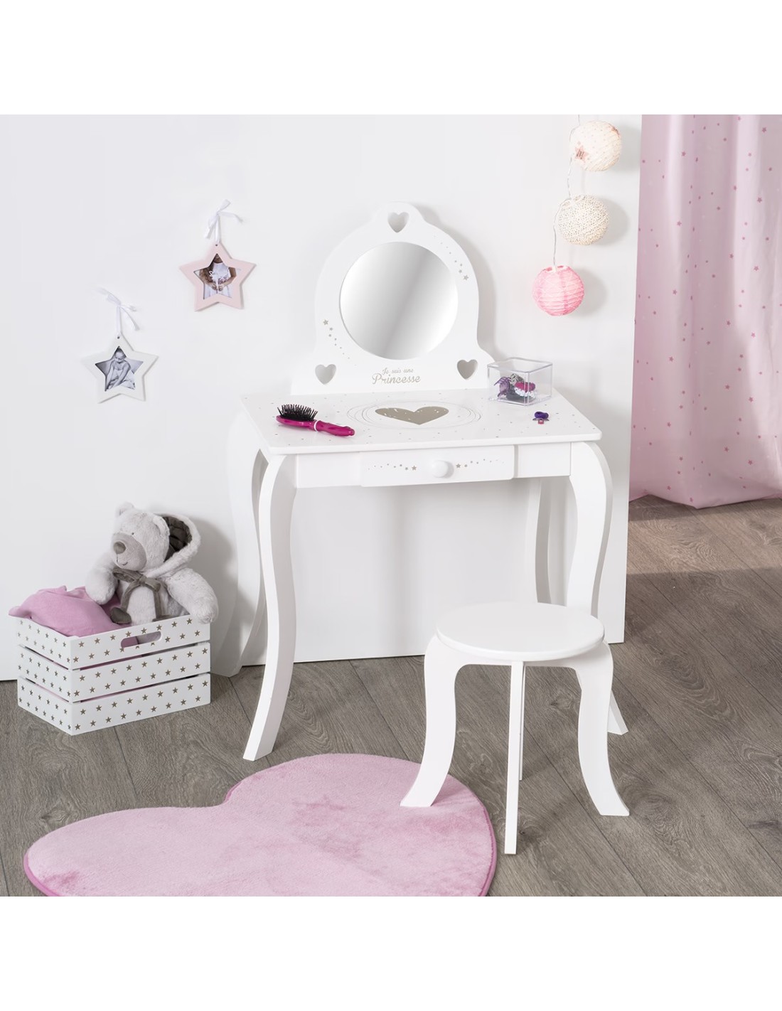 Coiffeuse enfant pour filles avec miroir et son siège idéal comme table de maquillage pour les petites princesses qui veulent faire comme leurs maman de la collection DEMOISELLE.