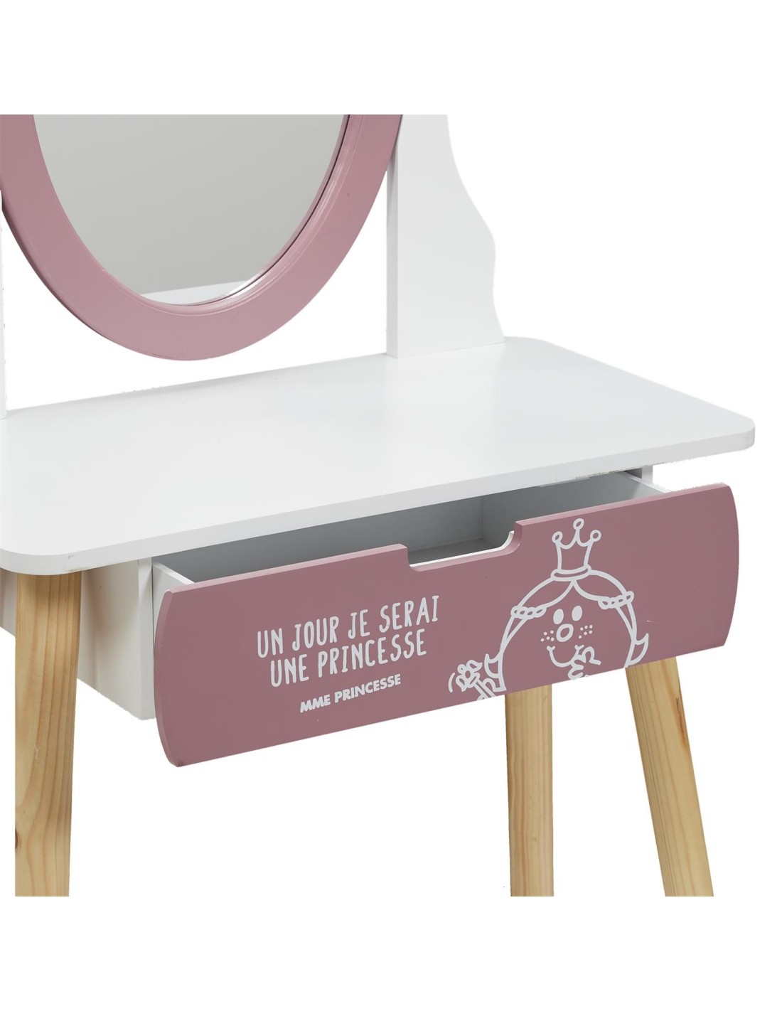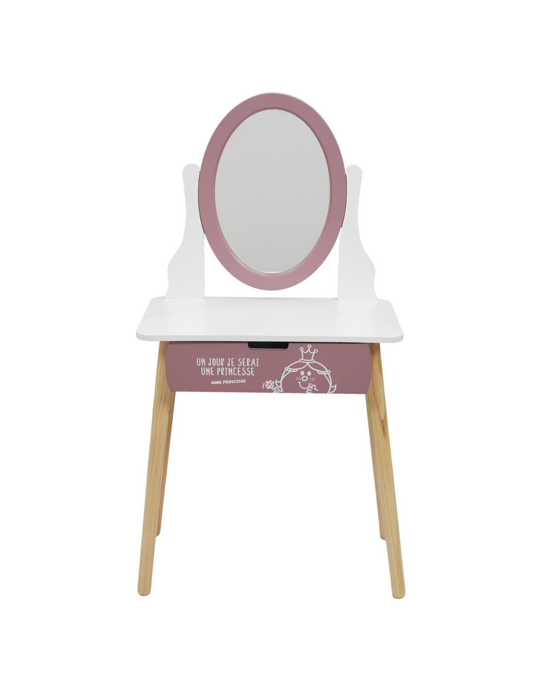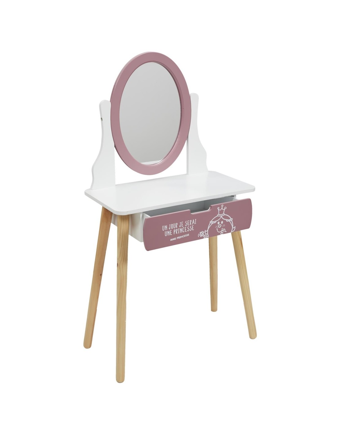 La coiffeuse Madame Princesse est parfaite pour la petite princesse qui veut se maquiller comme maman. Dotée d'un miroir et d'un tiroir, la coiffeuse complétera la chambre fantaisie de votre enfant en rose ou en blanc. Assortissez la chambre de vos petites princesses avec la coiffeuse parfaite. En rose et blanc, cette coiffeuse sera un atout pour la chambre de votre fille. Le miroir et le tiroir sont indispensables pour une coiffeuse. Madame Princesse est une coiffeuse pour votre petite princesse qui complètera parfaitement sa chambre. Dotée d'un miroir et d'un tiroir, cette coiffeuse pour enfants permettra à votre enfant de créer le look parfait pour un goûter élégant ou pour une occasion importante telle qu'un mariage ou un baptême. Elle résistera à l'épreuve du temps et offrira à votre enfant beaucoup d'espace pour ranger tous les accessoires dont elle a besoin pour se préparer pour la journée.