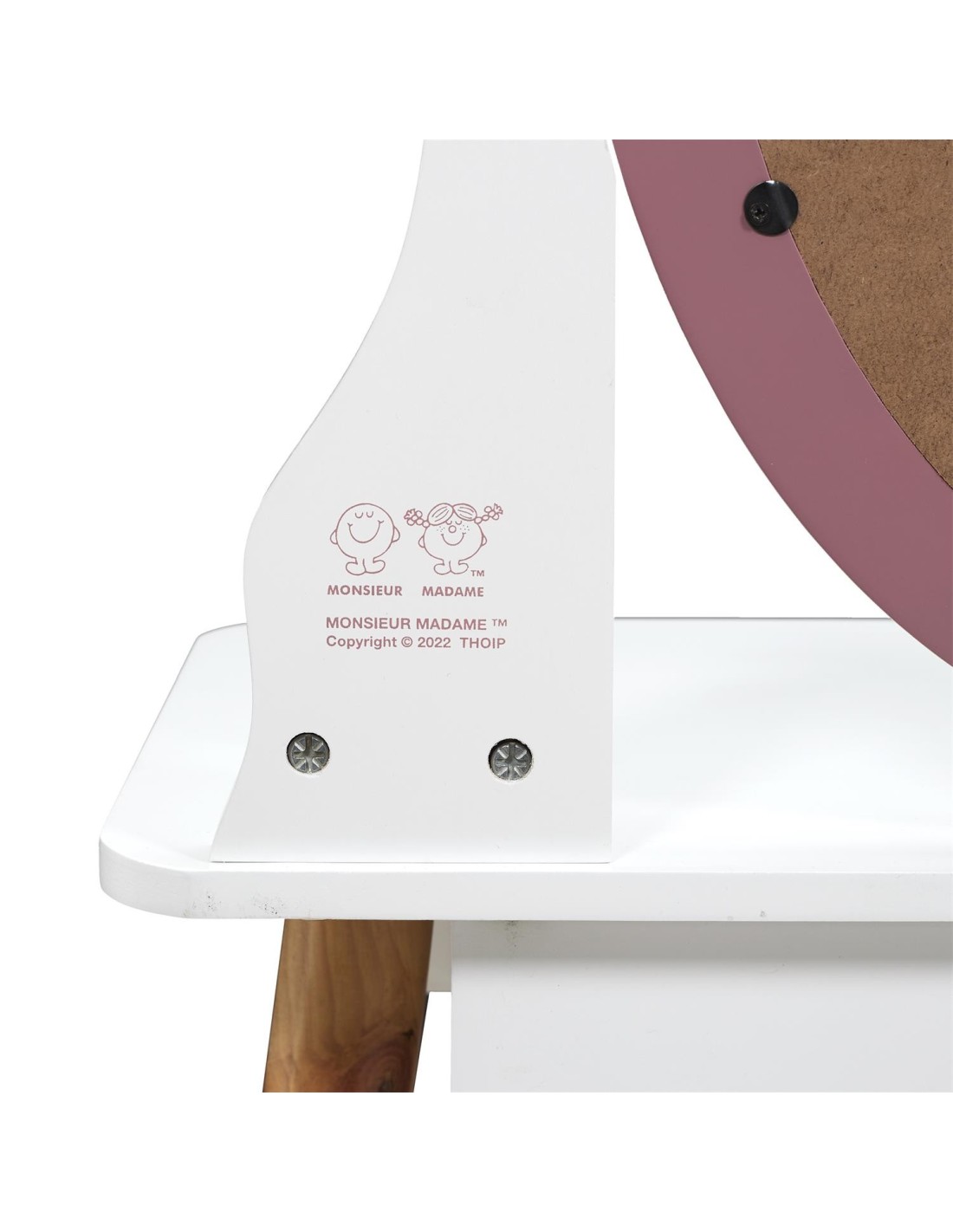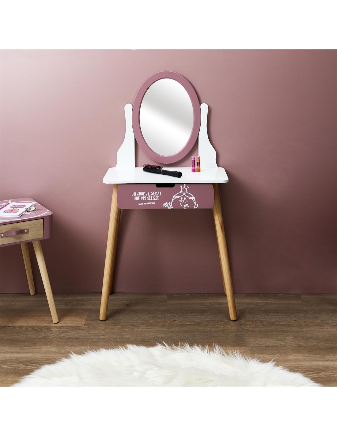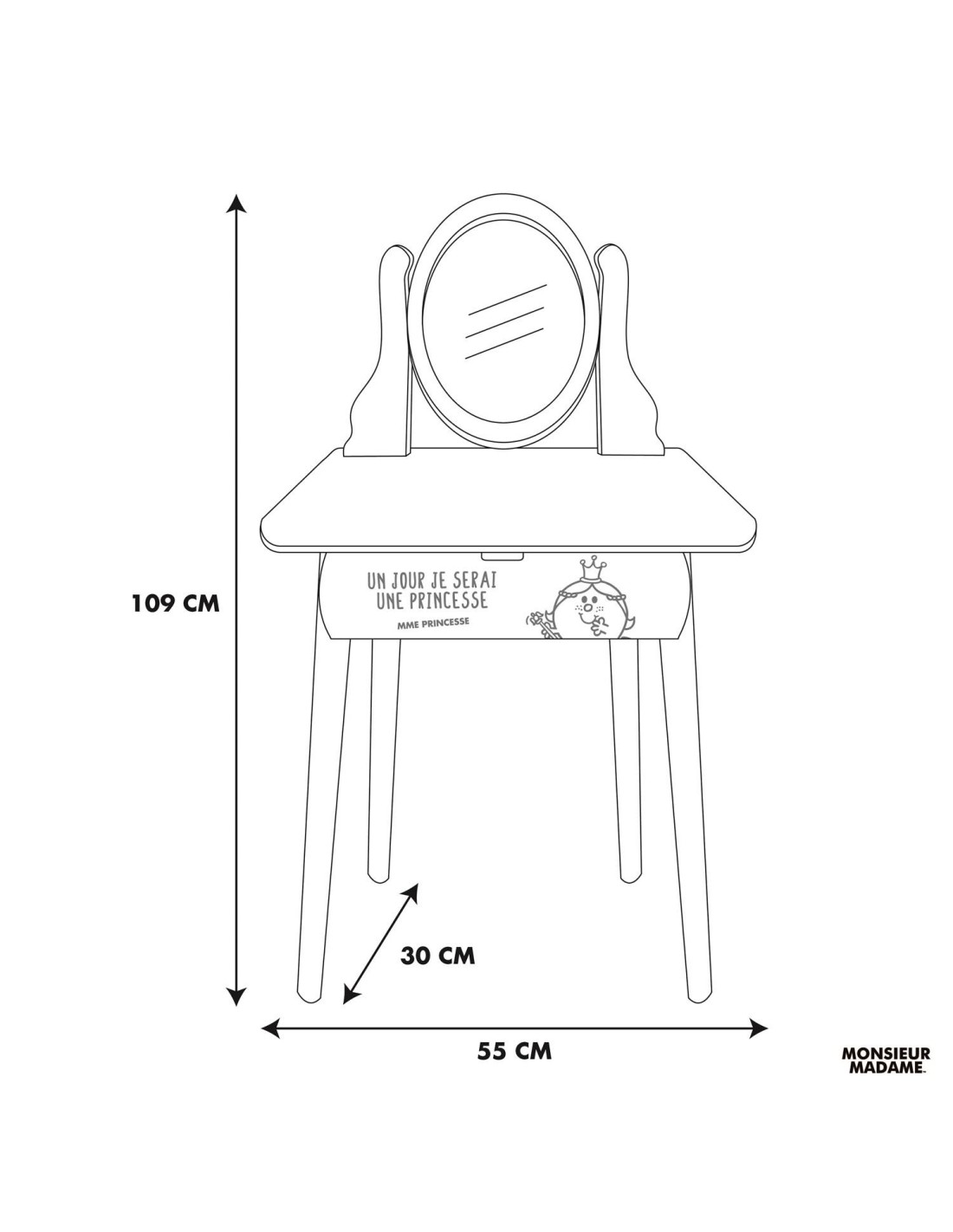 La coiffeuse Madame Princesse est parfaite pour la petite princesse qui veut se maquiller comme maman. Dotée d'un miroir et d'un tiroir, la coiffeuse complétera la chambre fantaisie de votre enfant en rose ou en blanc. Assortissez la chambre de vos petites princesses avec la coiffeuse parfaite. En rose et blanc, cette coiffeuse sera un atout pour la chambre de votre fille. Le miroir et le tiroir sont indispensables pour une coiffeuse. Madame Princesse est une coiffeuse pour votre petite princesse qui complètera parfaitement sa chambre. Dotée d'un miroir et d'un tiroir, cette coiffeuse pour enfants permettra à votre enfant de créer le look parfait pour un goûter élégant ou pour une occasion importante telle qu'un mariage ou un baptême. Elle résistera à l'épreuve du temps et offrira à votre enfant beaucoup d'espace pour ranger tous les accessoires dont elle a besoin pour se préparer pour la journée.