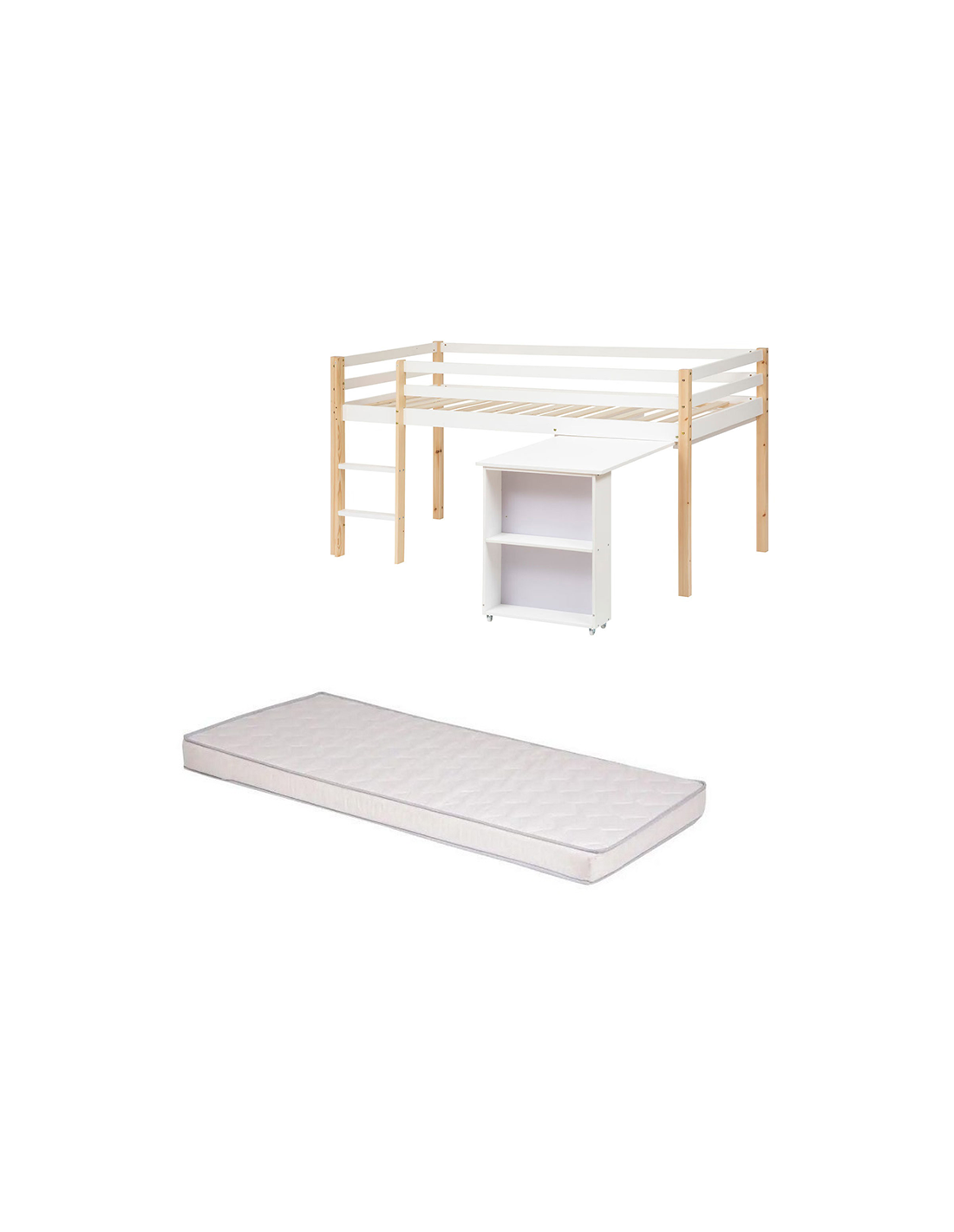 Éveillez l'esprit de votre enfant avec notre Ensemble Lit Bureau Blanc 90x190 + Matelas Enfant 90x190 de la marque Laïba Kids. Un aménagement de chambre intelligent qui allie l'ingéniosité d'un lit confortable et la fonctionnalité d'un bureau intégré pour les petites têtes curieuses et créatives. Ce lit bureau, avec sa finition blanche épurée, est le rêve de tout enfant qui souhaite apprendre, jouer et se reposer dans son propre espace. Le design innovant encourage non seulement le repos de qualité, mais aussi l'apprentissage et la créativité, ce qui en fait un choix parfait pour les enfants en pleine croissance.