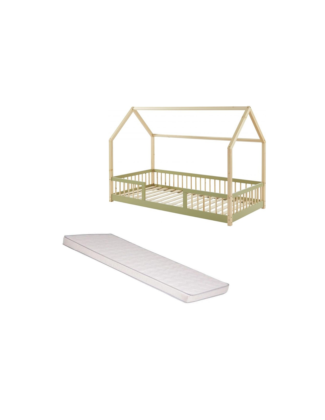 Caractéristiques sur le Ensemble Lit Cabane Barrière Vert 90x190 cm + Matelas Enfant 190x90 - Laïba Kids :