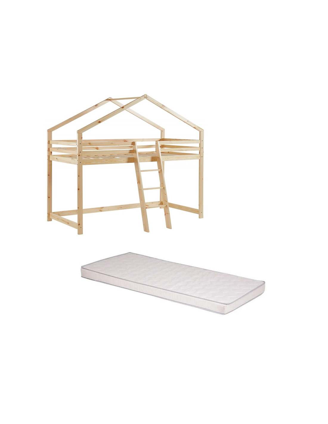Fabriqué à partir de bois massif de haute qualité, le lit mezzanine arbore une finition naturelle qui respire l'élégance intemporelle. Le design élégant et les lignes épurées font de ce lit un complément attrayant à n'importe quel décor de chambre d'enfant. Inclus dans cet ensemble, le matelas 90x190 offre un confort suprême pour une bonne nuit de sommeil. Il est conçu pour soutenir la croissance de votre enfant, en offrant un soutien optimal tout en étant suffisamment doux pour garantir un sommeil réparateur et de rêves doux.