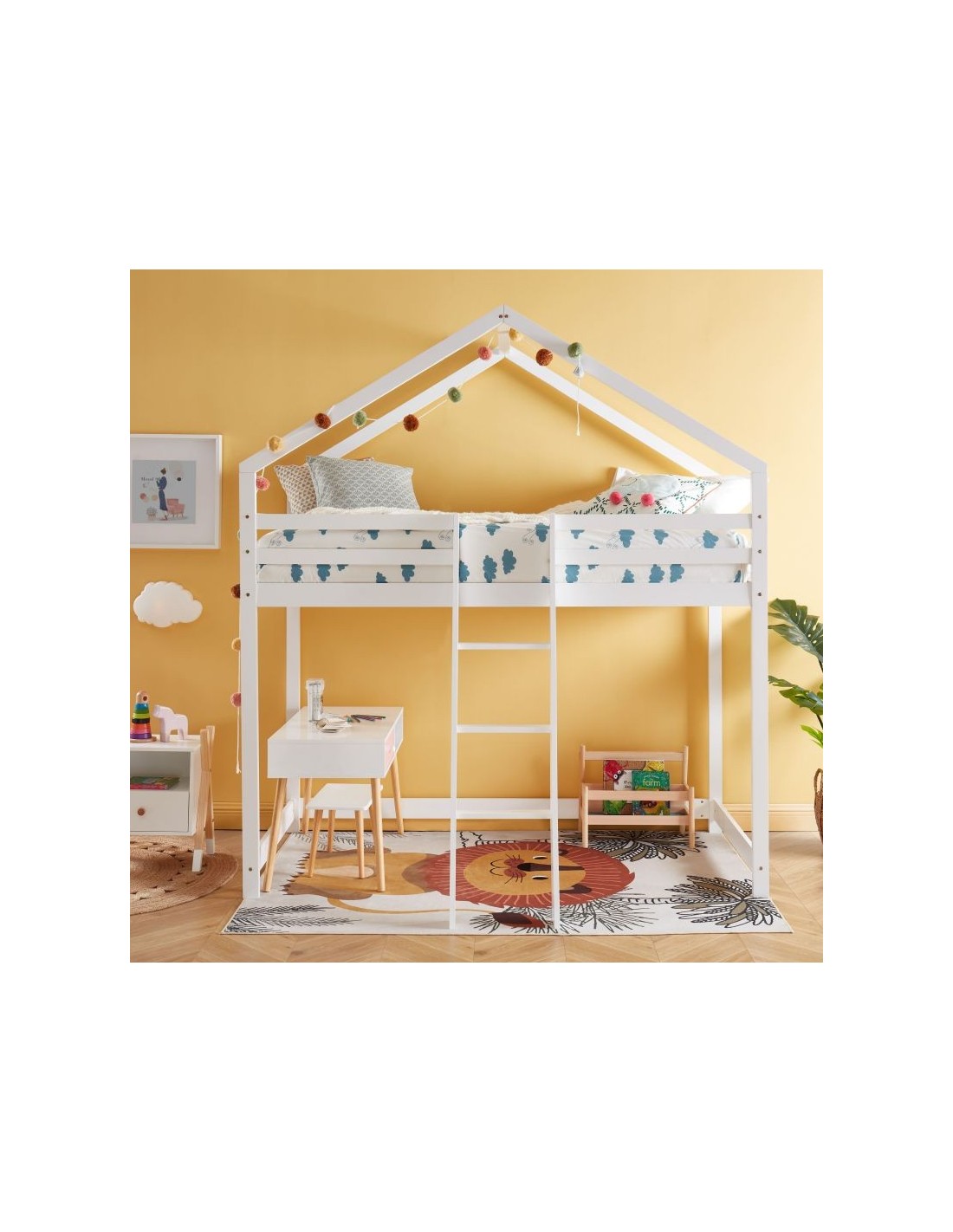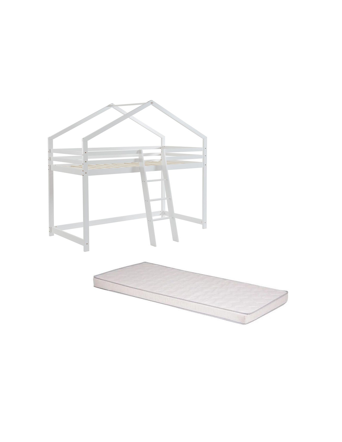 Caractéristiques sur le Ensemble Lit mezzanine Blanc 90x190 + Matelas enfant 90x190 - Laïba Kids :