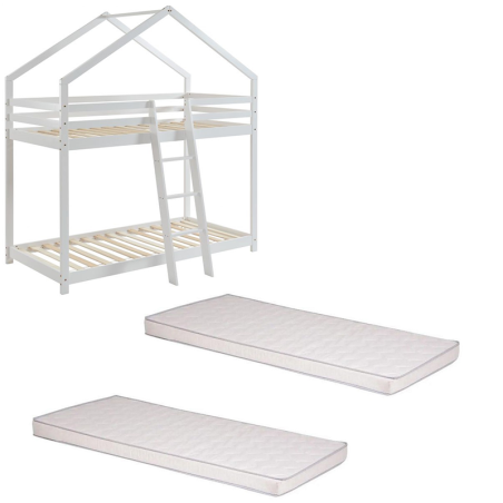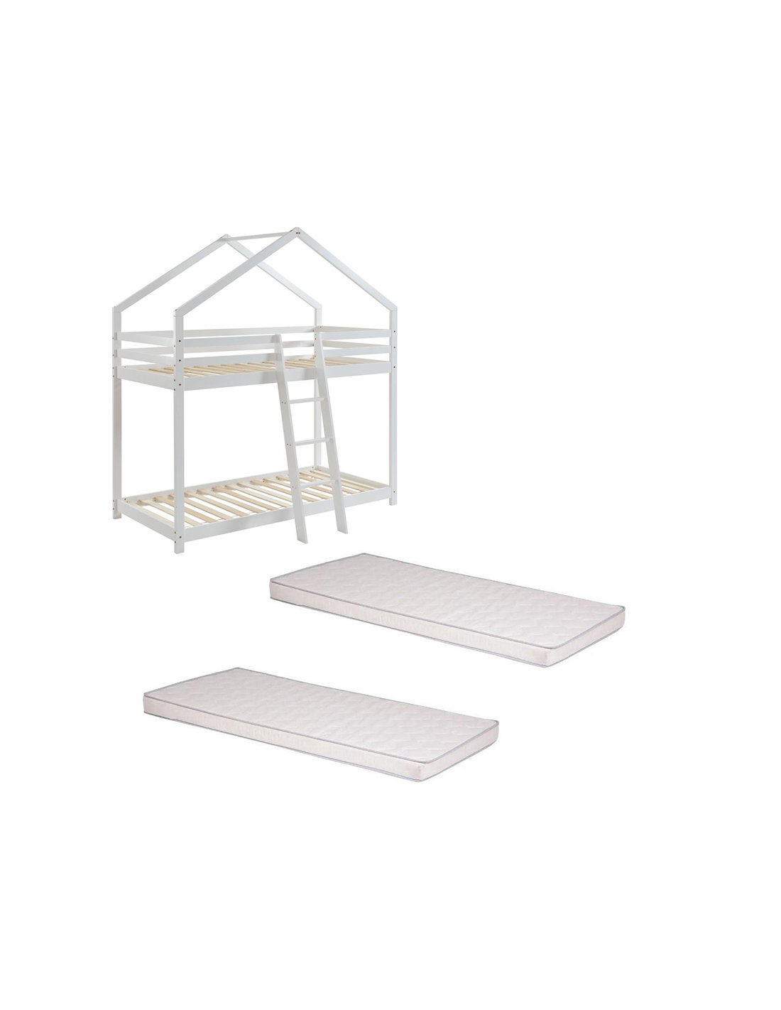 Caractéristiques sur le Ensemble Lit Superposé Blanc 90x190 + 2 Matelas enfants 90x190 - Laïba Kids :