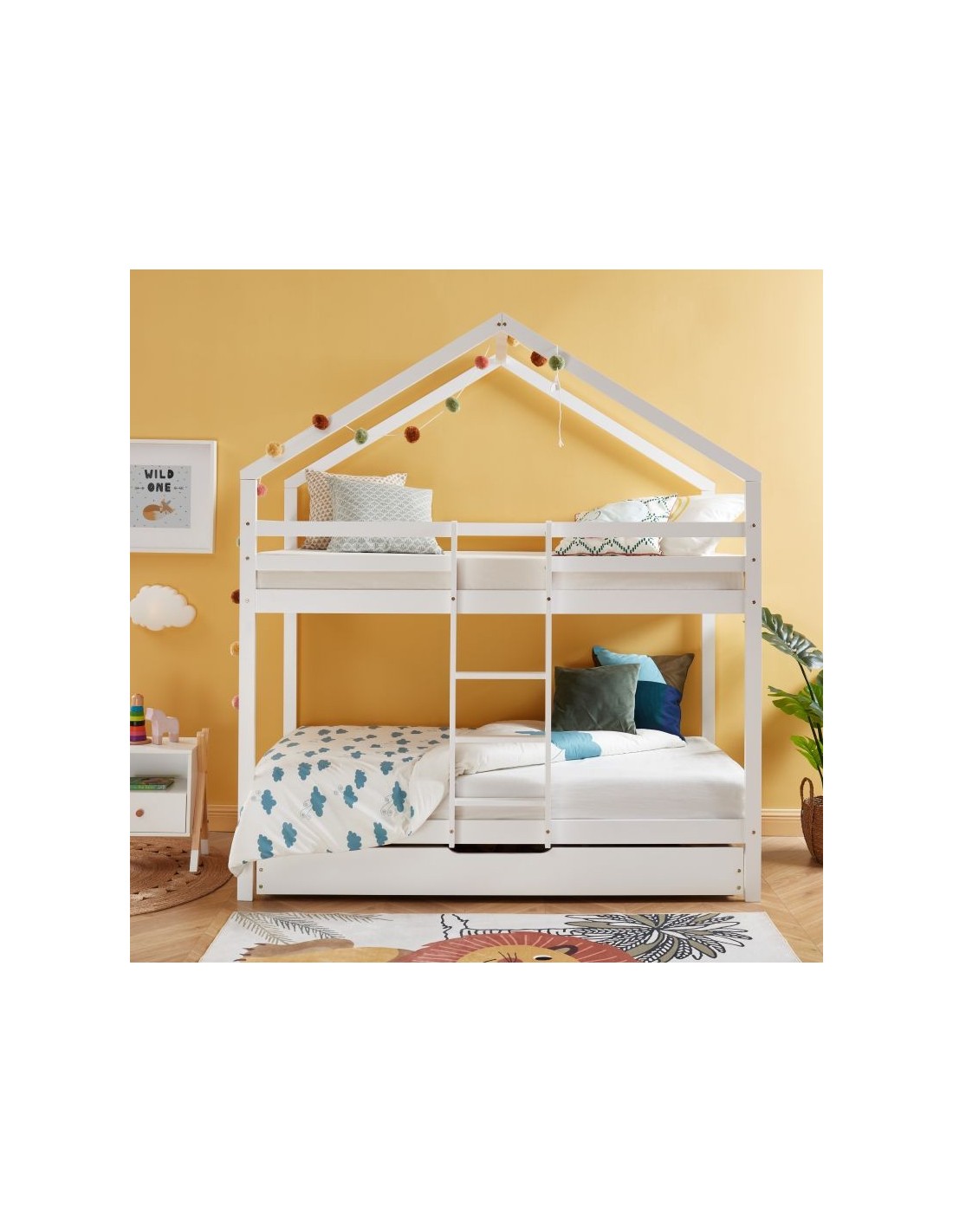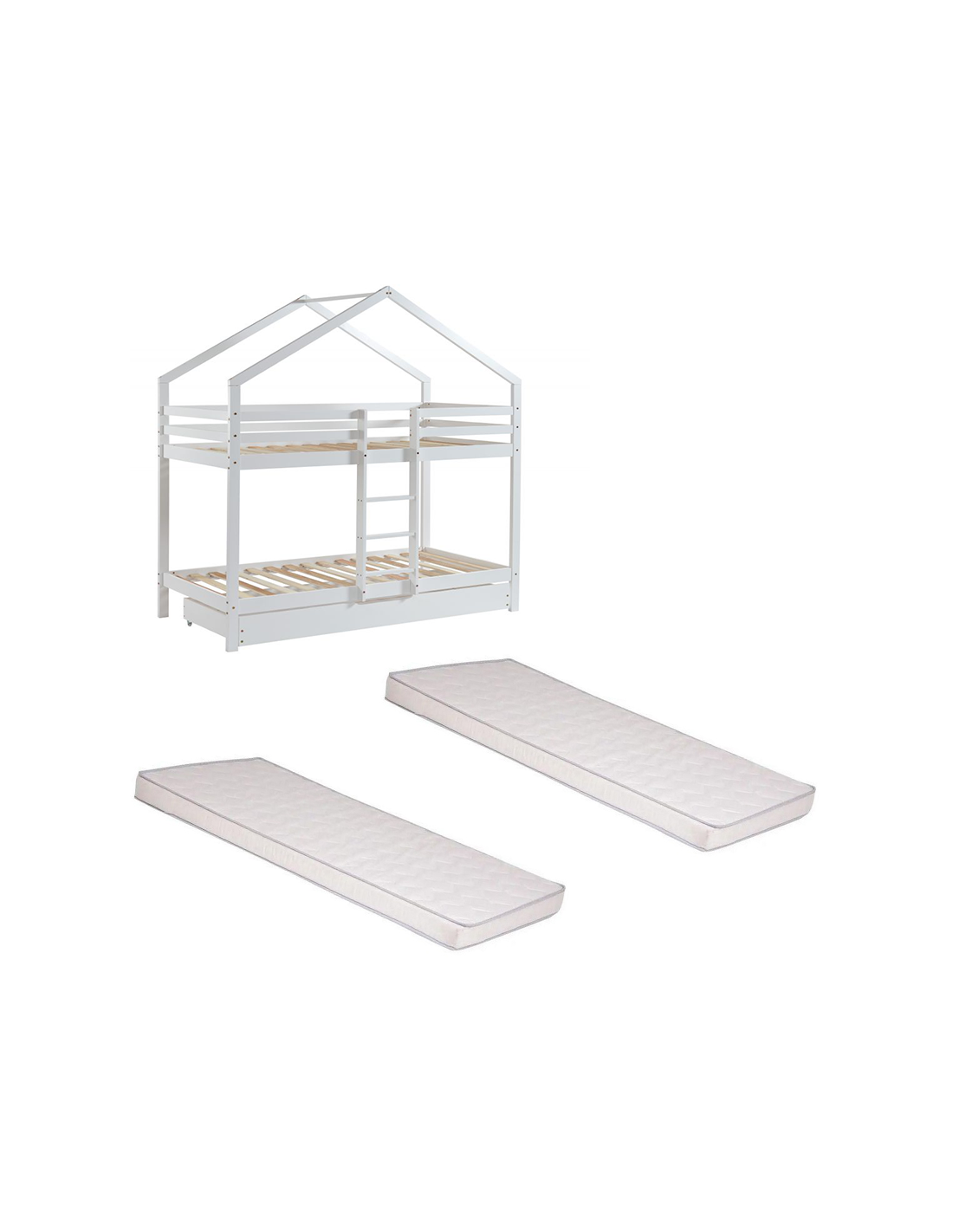 Caractéristiques sur le Ensemble Lit mezzanine Blanc 90x190 + 2 Matelas enfant 90x190 - Laïba Kids :