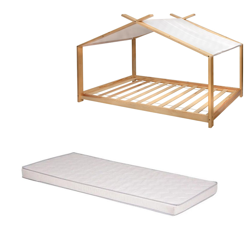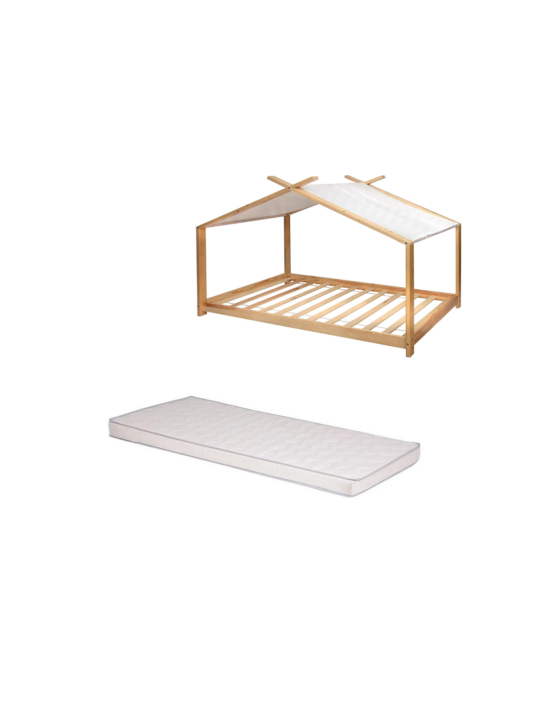 Caractéristiques sur le Ensemble Lit Tente Nuage Beige 90x190 + Matelas Enfant 90x190 - Laïba Kids :
