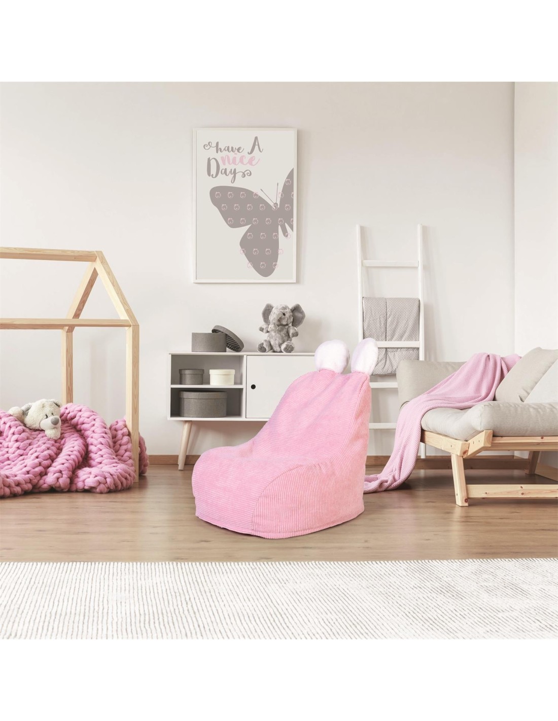 Les enfants vont adorer ce fauteuil poire en velours côtelé. - Dimensions : 40x62x70 cm - Lavage main - Design à 2 pompons - Douillet - Confortable