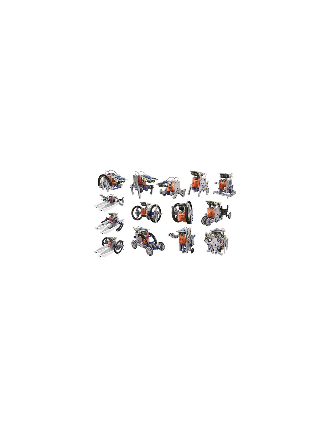 Assemble 14 modèles différents un à un pour obtenir des robots amusants: voiture, crabe, boxeur et bateau...Le panneau solaire capte le soleil pour alimentes le moteur et faire fonctionner le robot !