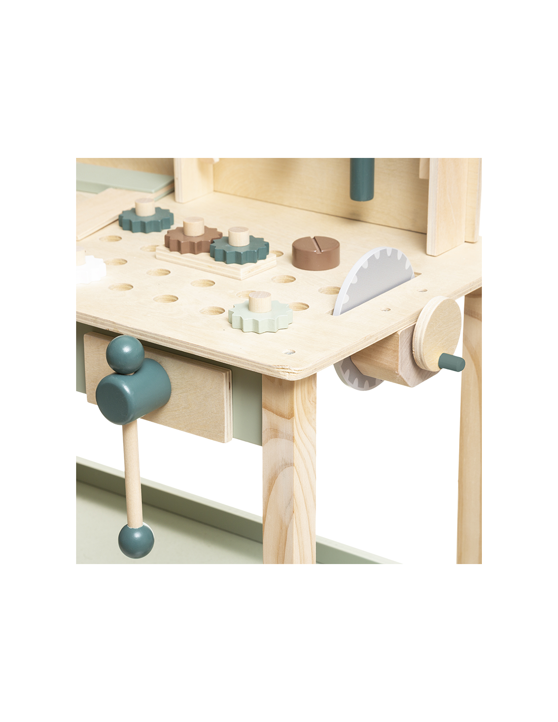 Grâce à cet établi se sentira comme un véritable bricoleur. Il est donc idéal pour tous les enfants dès 3 ans parce qu'il mesure 75,5 cm de haut. Il est construit en bois et convient pour la chambre de votre enfant.