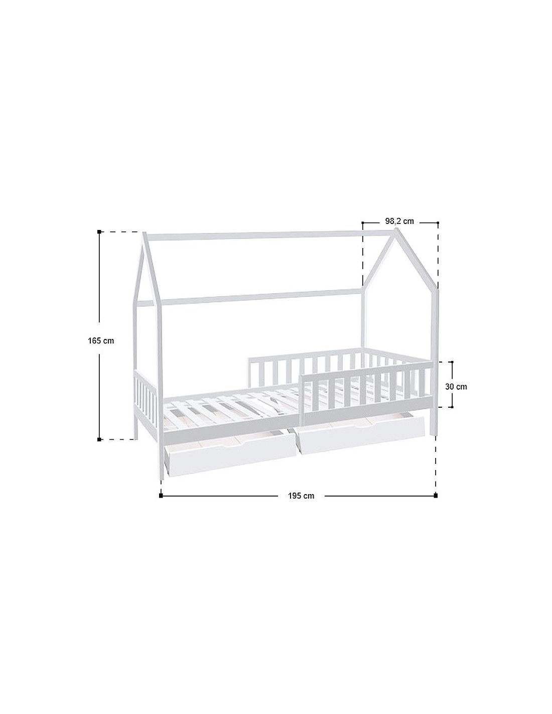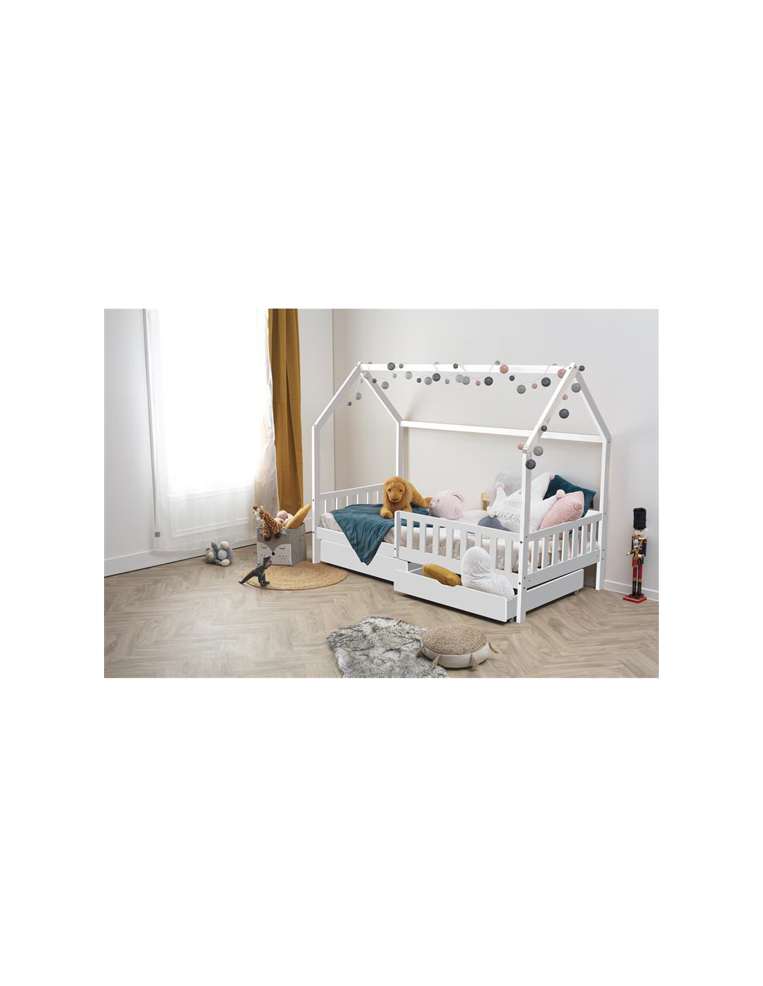 Caractéristiques du Lit cabane avec 2 tiroirs Cocon Doux Blanc 90x190 cm - Laïba Kids :