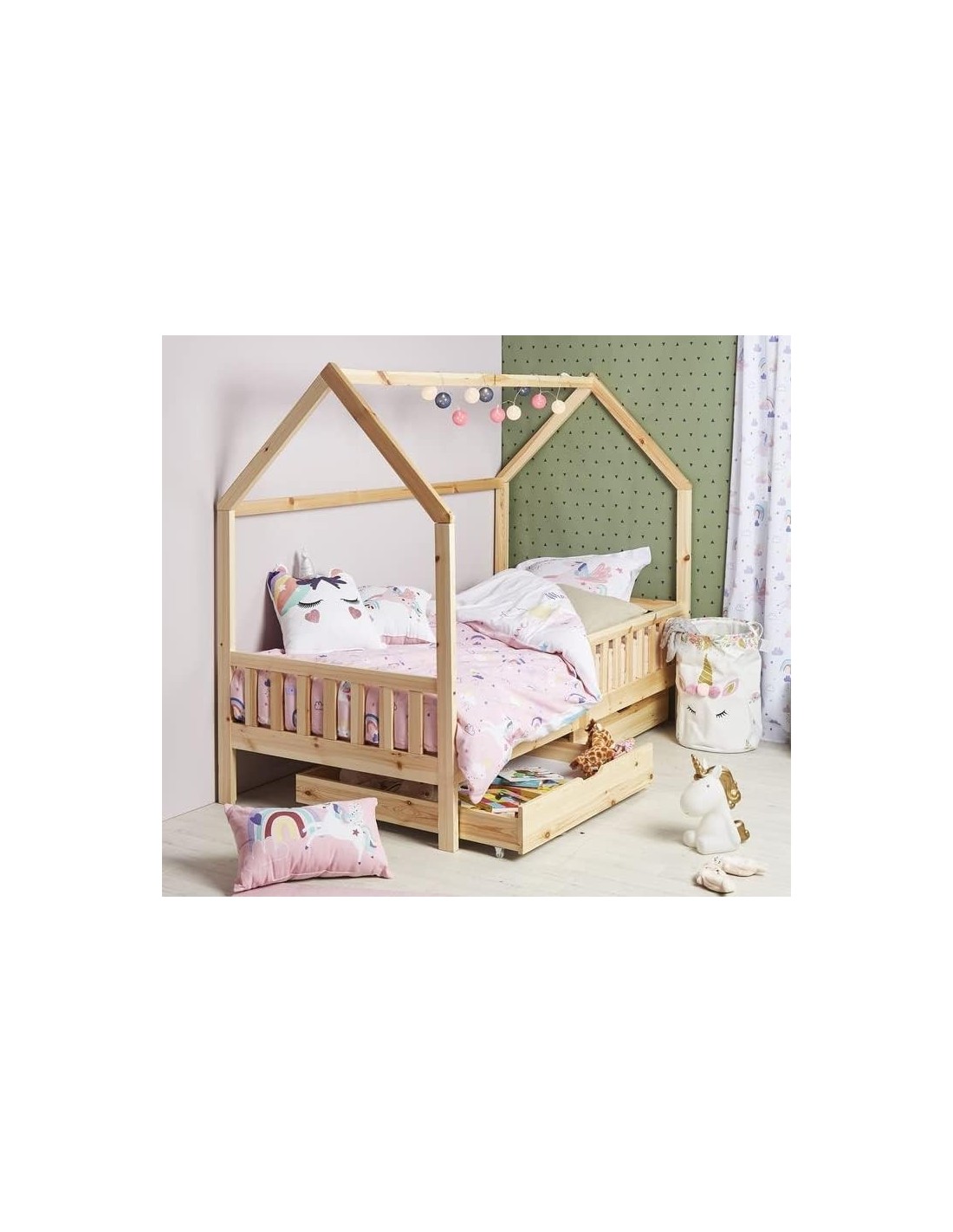 Caractéristiques sur le Lit Cabane Avec 2 Tiroirs Cocon Doux 90x190 cm - Laïba Kids :