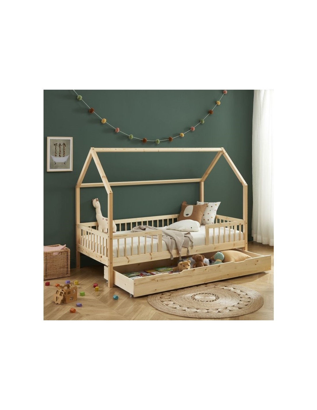 Explorez le monde merveilleux de l'enfance avec le Lit Cabane Aventure Beige 90x190 de Laïba Kids, une invitation irrésistible à l'imagination, à l'aventure et au confort. Ce lit cabane est bien plus qu'un simple meuble, c'est un portail vers des rêves et des histoires extraordinaires. Imaginez votre enfant s'endormir chaque nuit dans son propre refuge d'aventurier, prêt à partir à la découverte de mondes fantastiques. Les barrières de sécurité intégrées assurent des nuits paisibles pour les parents, tandis que le tiroir de rangement pratique sous le lit abrite les trésors secrets de votre petit explorateur.