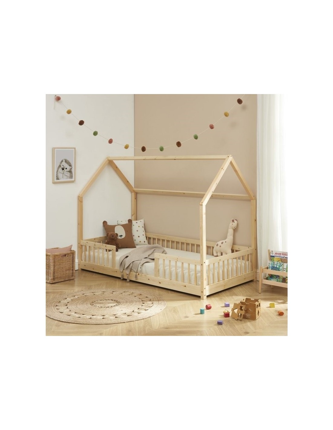 Caractéristiques sur le Lit cabane avec barrière Ludique Beige 90x190 - Laïba Kids :