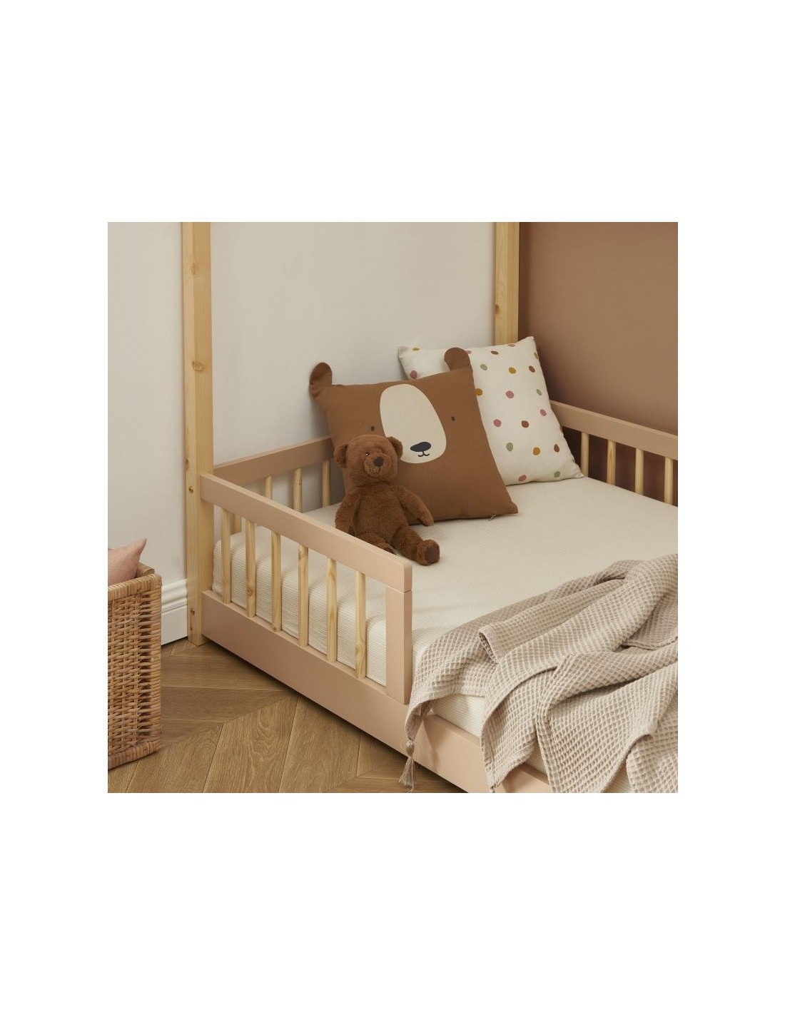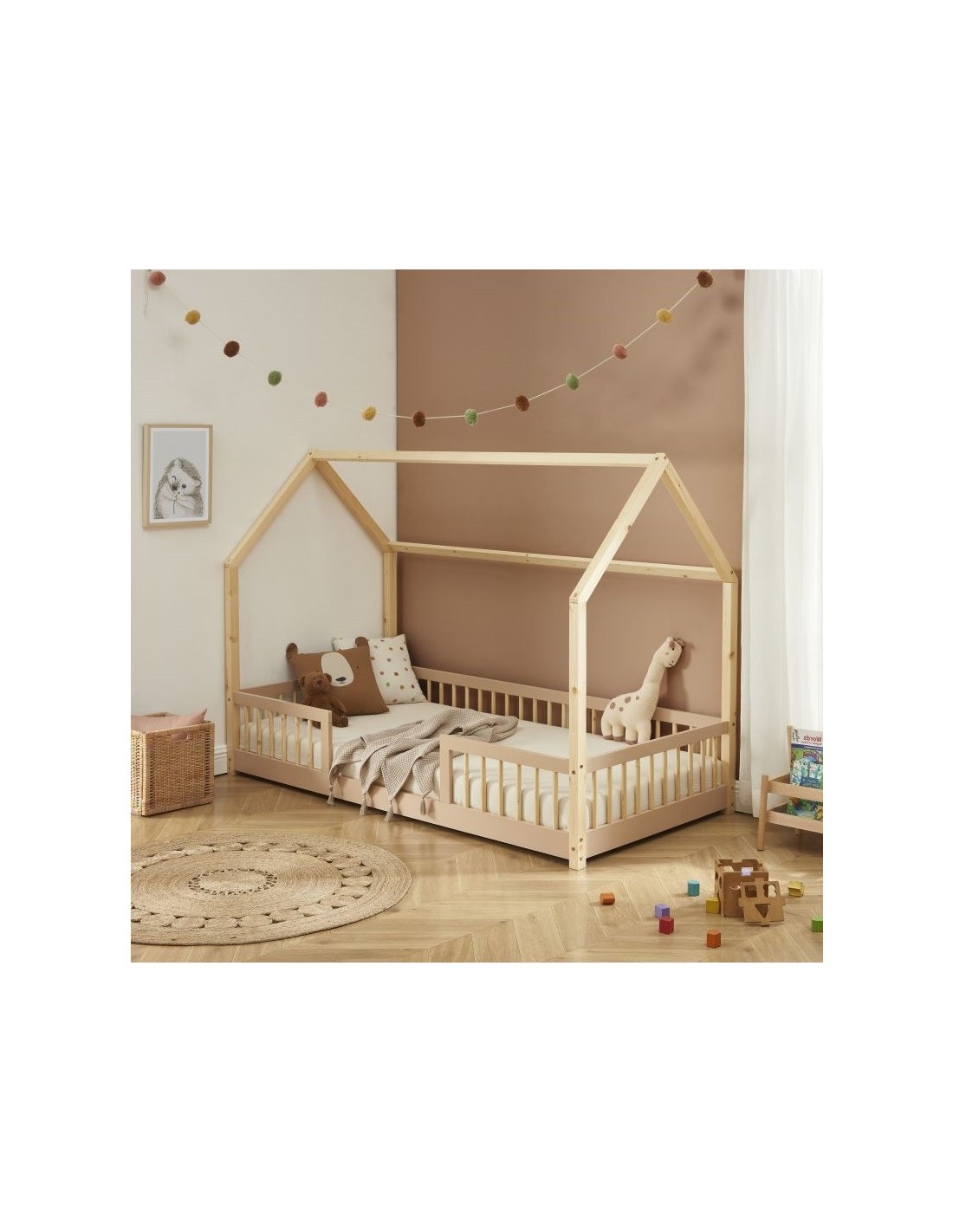 Caractéristiques sur le Lit cabane avec barrière Ludique Rose 90x190 - Laïba Kids :