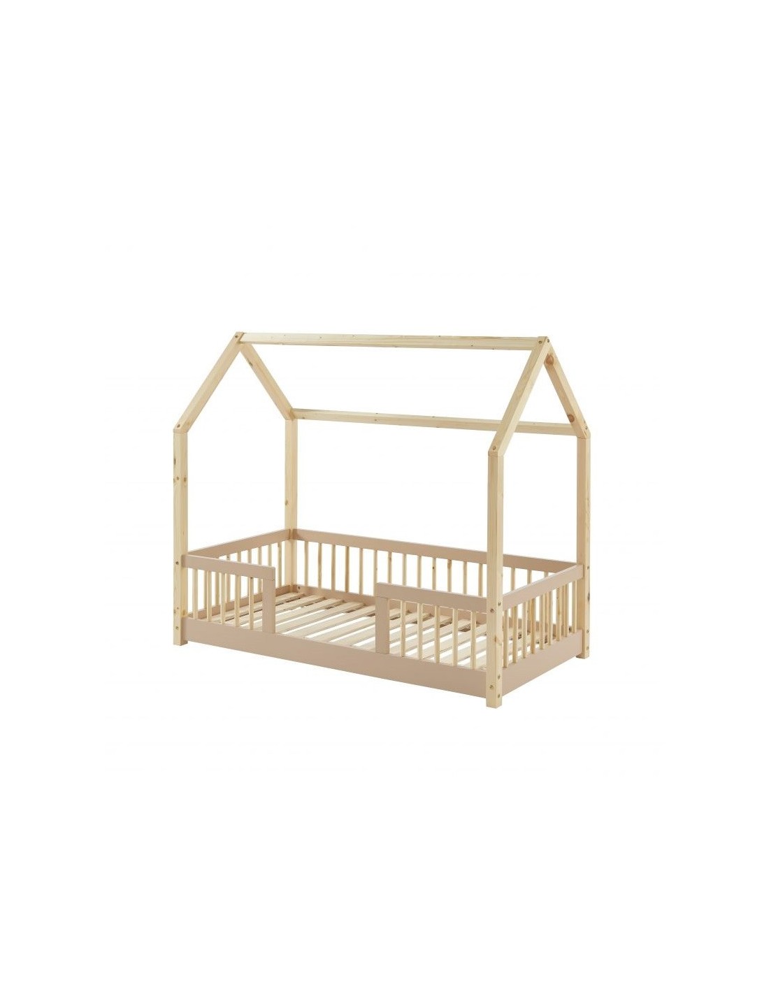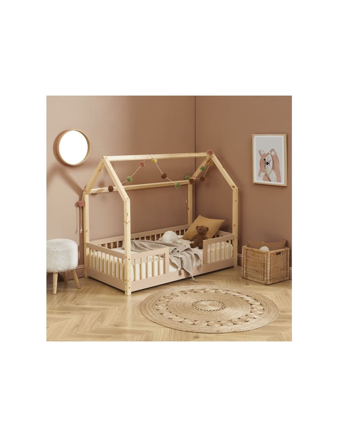 Caractéristiques sur le Lit cabane avec barrières Explorateur Rose 70x140 - Laïba Kids :