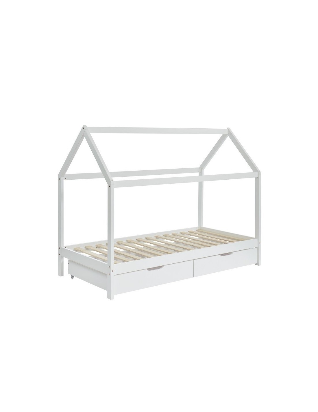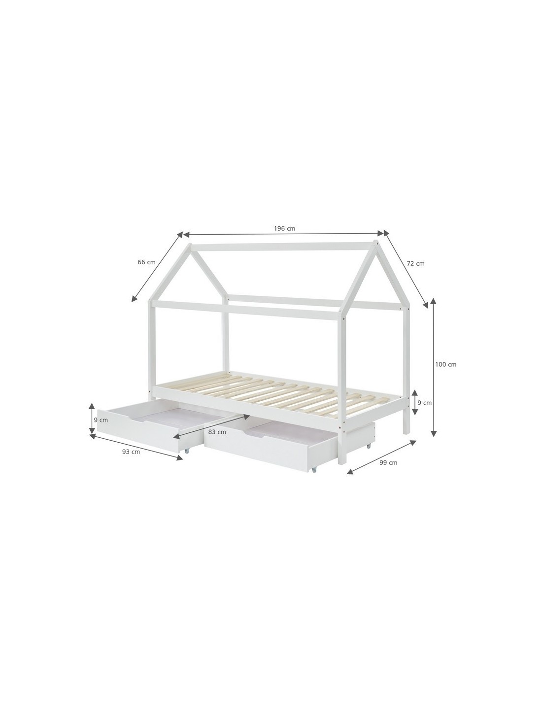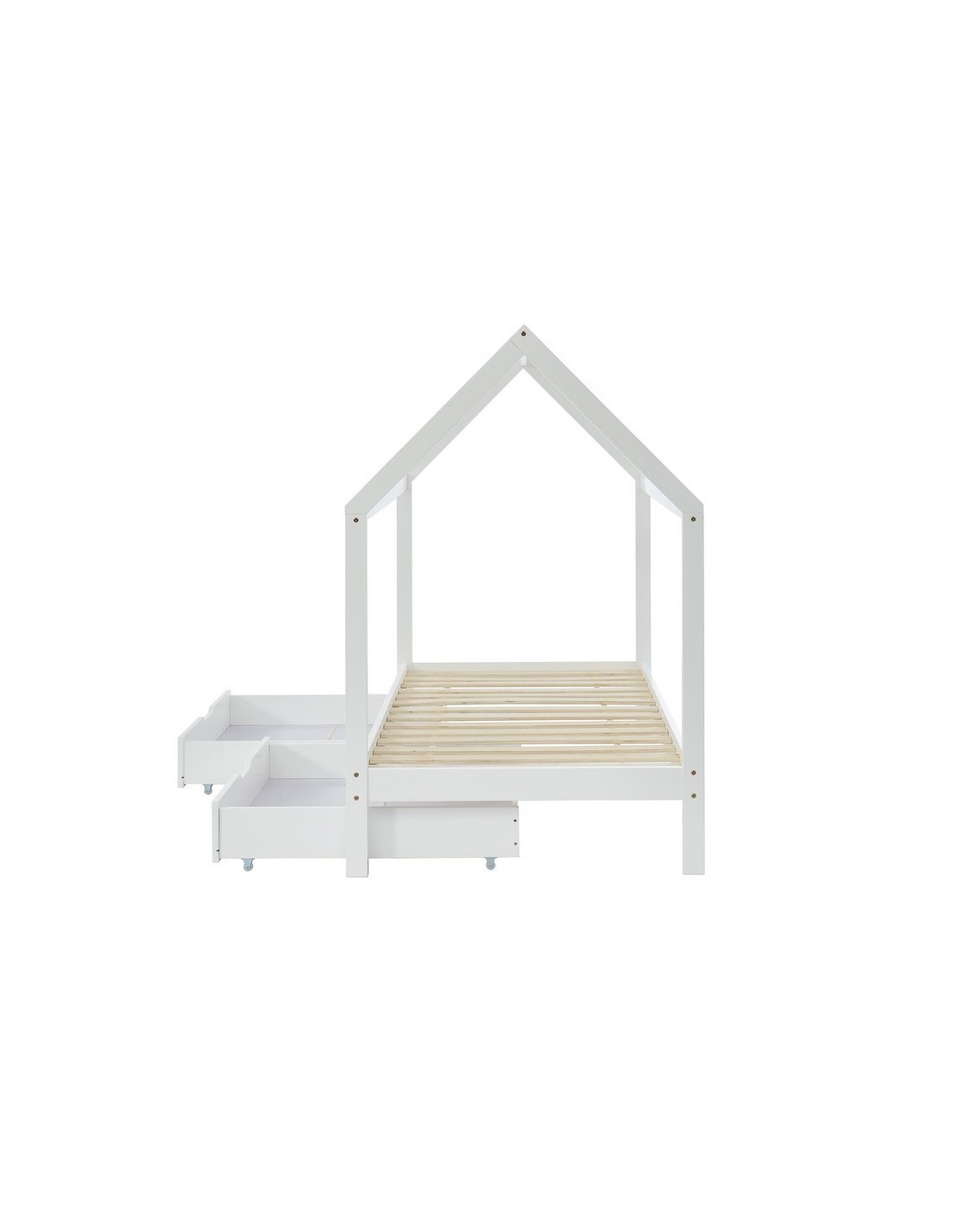 Caractéristiques sur le Lit cabane avec tiroirs Petit Paradis Blanc 90x190 - Laïba Kids :