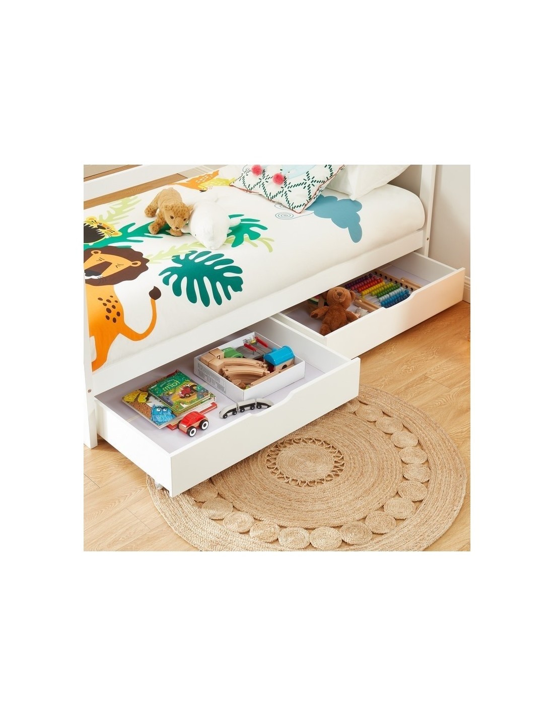 Avec sa structure minimaliste, le lit cabane Petit Paradis s'adapte aussi bien aux chambres modernes qu'aux intérieurs plus traditionnels. Mais ce lit n'est pas juste une merveille pour les yeux, il offre également une fonctionnalité incomparable. Grâce à ses deux tiroirs spacieux intégrés, il vous aide à maximiser l'espace de la chambre tout en gardant les affaires de votre enfant organisées et à portée de main. C'est une combinaison unique de design et de fonctionnalité qui va transformer leur chambre en un lieu où le sommeil est un plaisir et non une corvée.