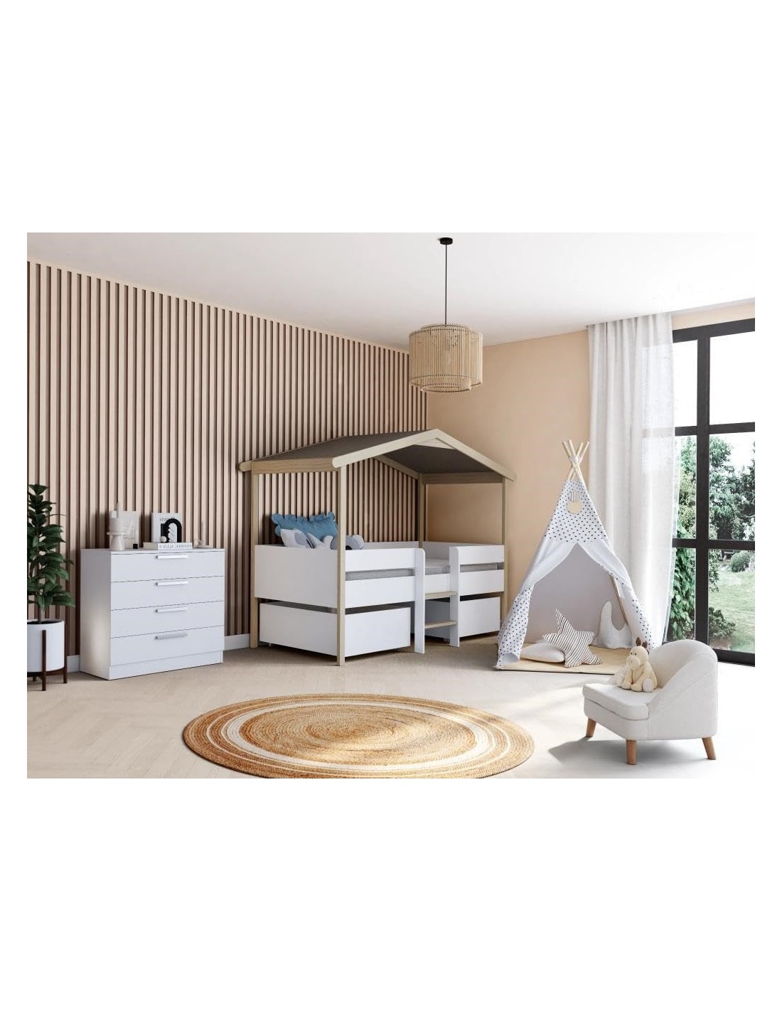 Embarquez dans une aventure enchantée avec le Lit Cabane "Jardin Secret" de Laïba Kids, un sanctuaire de rêve pour votre enfant. Ce lit magnifique, conçu avec soin et amour, allie parfaitement fonctionnalité et féerie. Avec son sommier et ses deux tiroirs de rangement, il offre le confort d’un sommeil paisible et une solution astucieuse pour garder la chambre ordonnée, tout cela en ajoutant une touche de magie à la décoration. Les deux tiroirs sous le lit sont une véritable aubaine pour optimiser l'espace de la chambre. Ils offrent une grande capacité de rangement pour les jouets, les livres ou le linge de lit, rendant le nettoyage rapide et facile et permettant à votre enfant de maintenir son espace de vie organisé et accueillant.