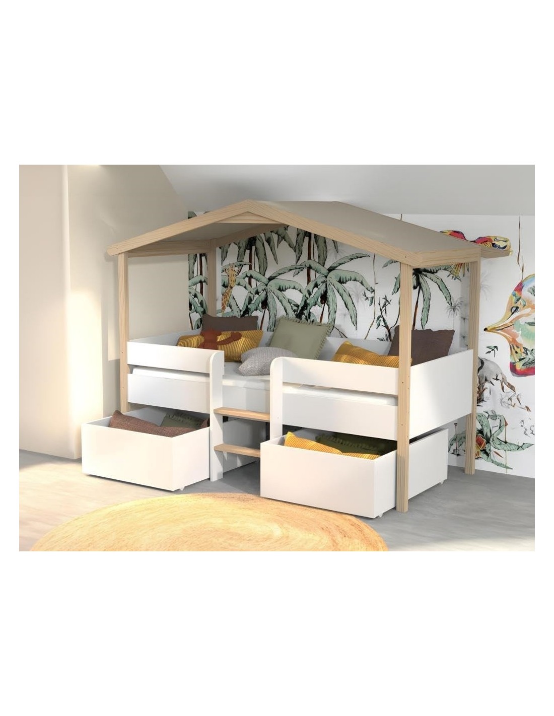 Caractéristiques sur le Lit cabane enfant Jardin Secret 90x190 avec sommier + 2 tiroirs Naturel - Laïba Kids :