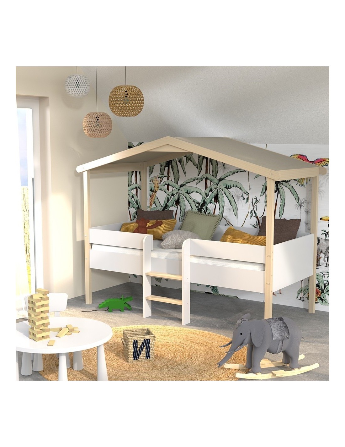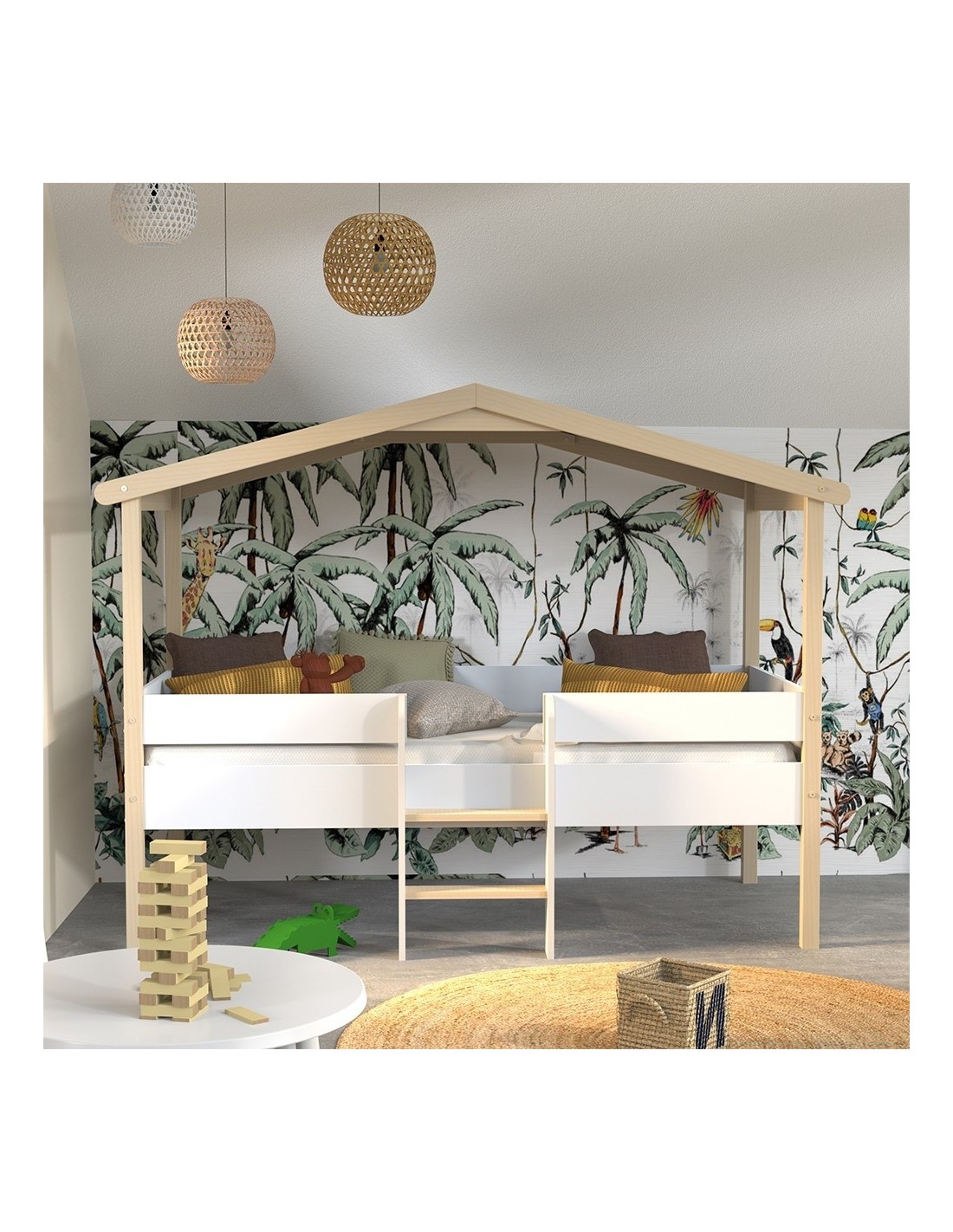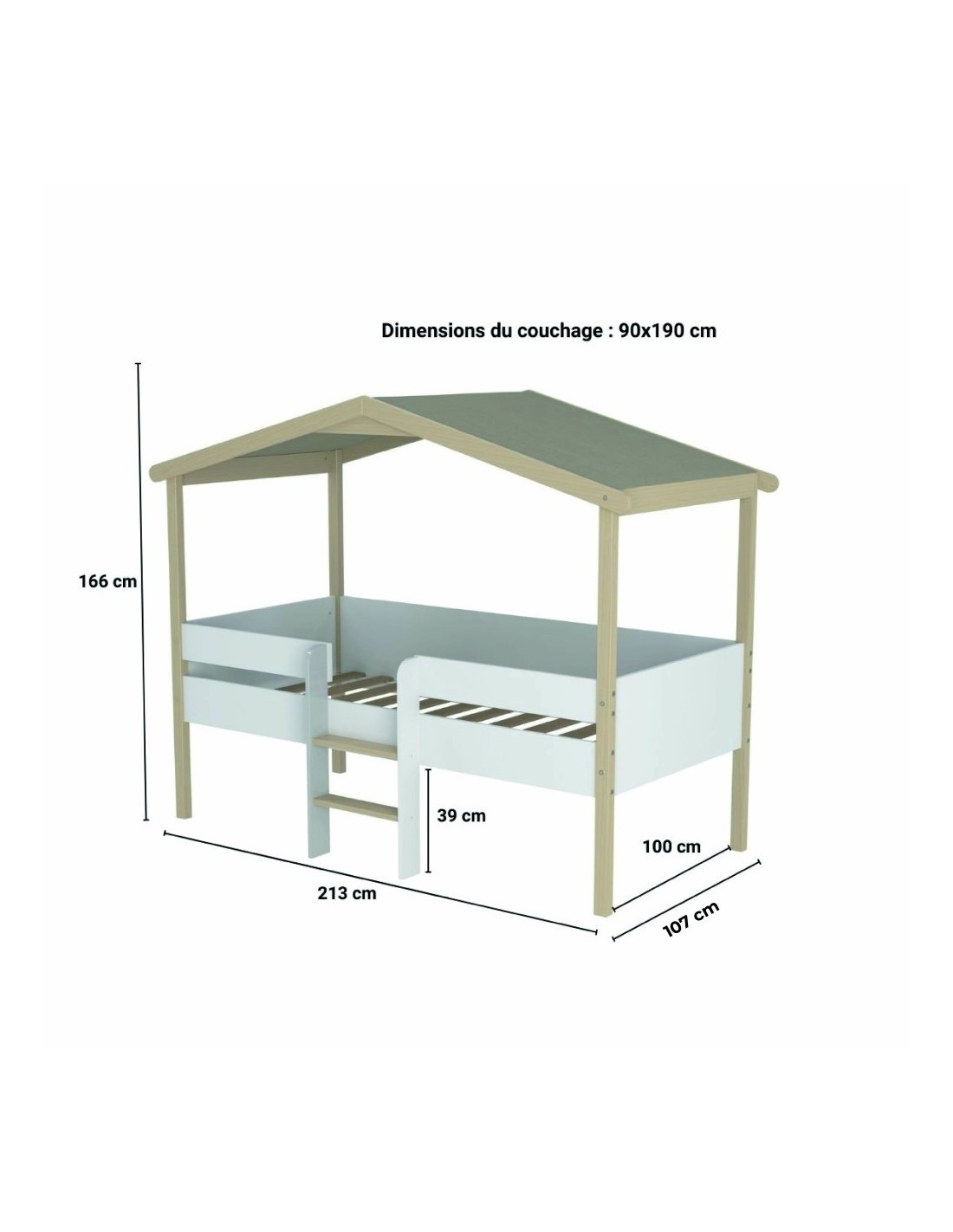 Caractéristiques sur le Lit cabane enfant PILOTI 90x190 avec sommier Naturel - Weber Industries :
