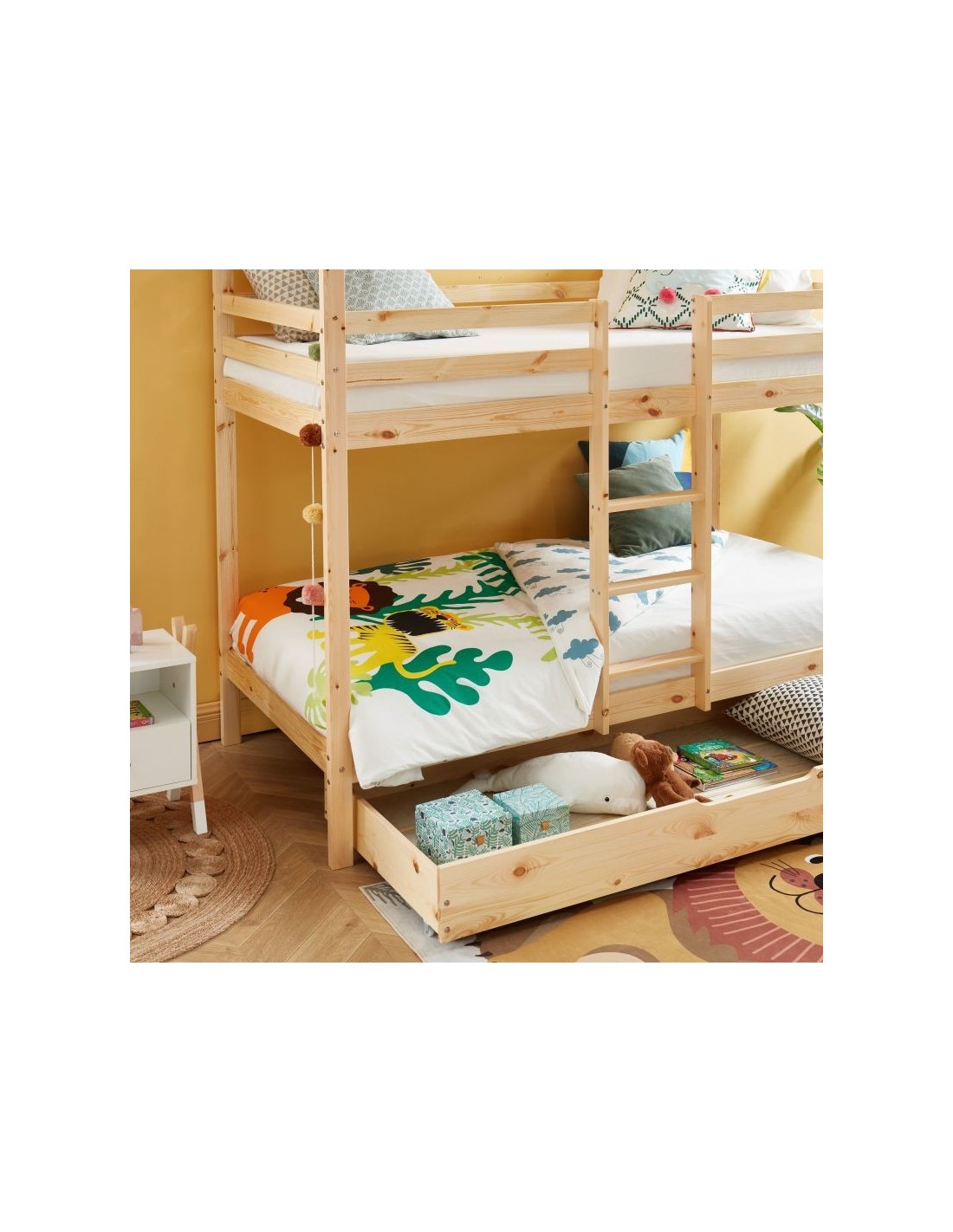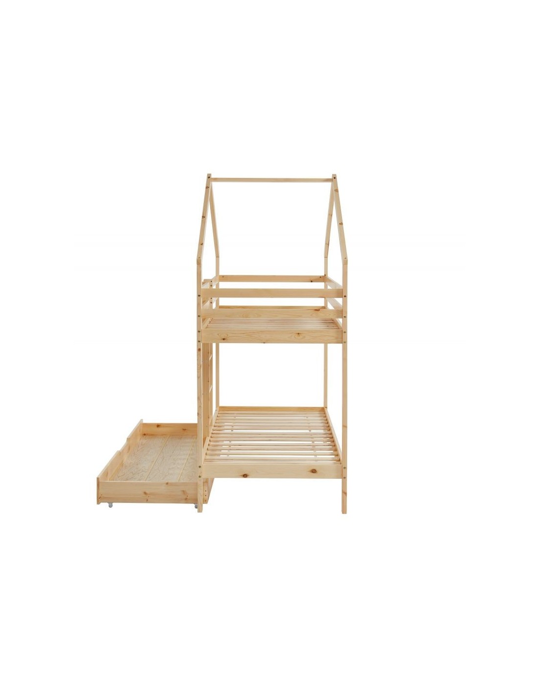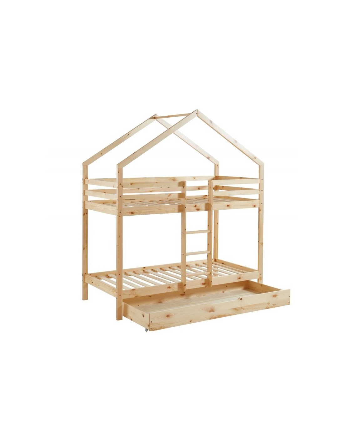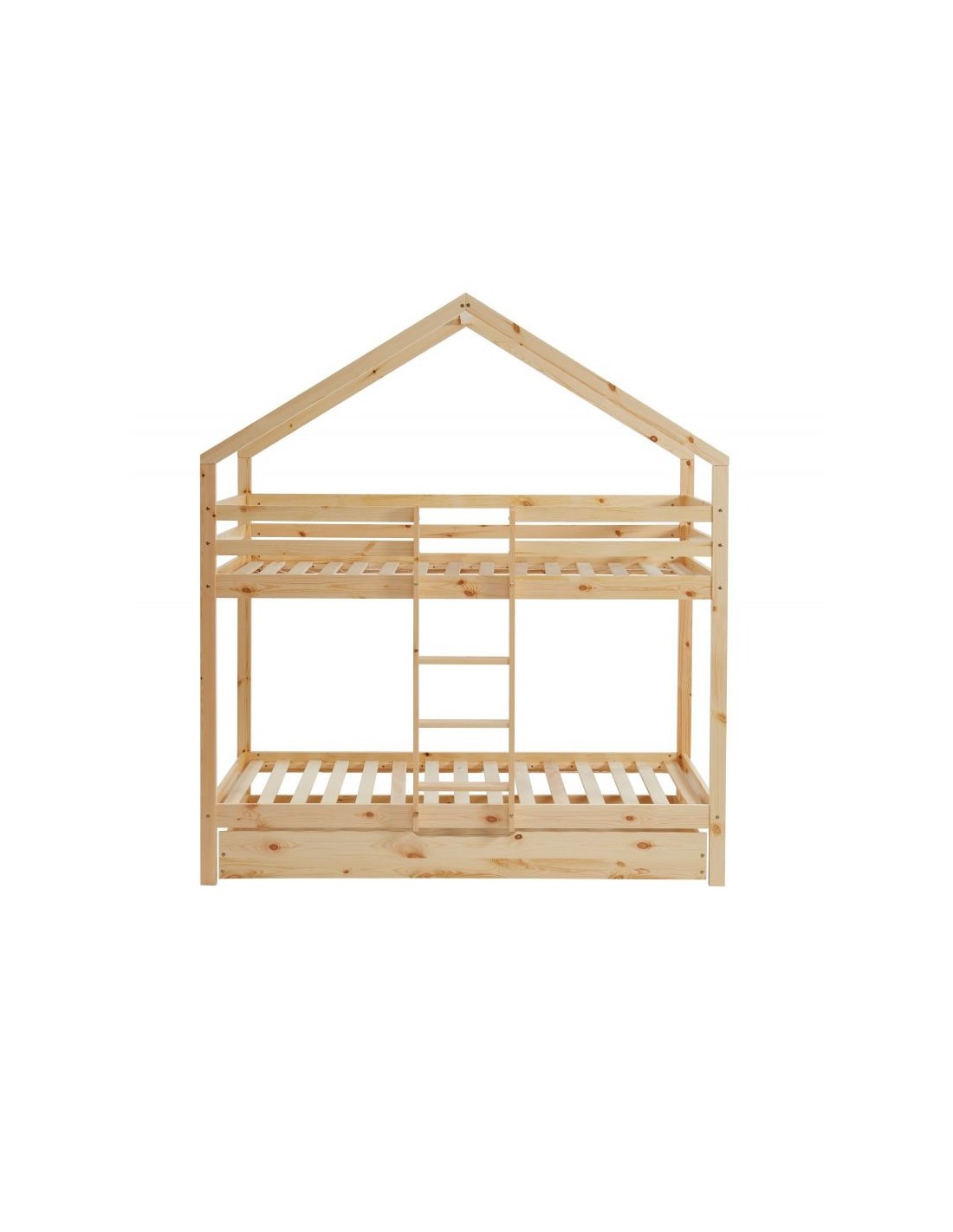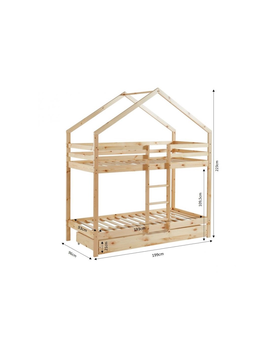 Ce lit est conçu pour durer. Fabriqué en bois massif de qualité supérieure, il peut supporter les défis quotidiens tout en garantissant la sécurité de vos enfants. Les barrières de sécurité intégrées assurent la protection des dormeurs, tandis que l'échelle solide facilite l'accès au lit supérieur. Pour maximiser l'utilisation de l'espace, notre lit cabane superposé est équipé d'un grand tiroir sous le lit inférieur. Parfait pour ranger les jouets, les vêtements ou le linge de lit, il vous aide à garder la chambre de vos enfants organisée et sans encombrement. Les sommiers à lattes fournissent un support solide et une bonne circulation de l'air, garantissant ainsi un environnement de sommeil sain et propice à de doux rêves.