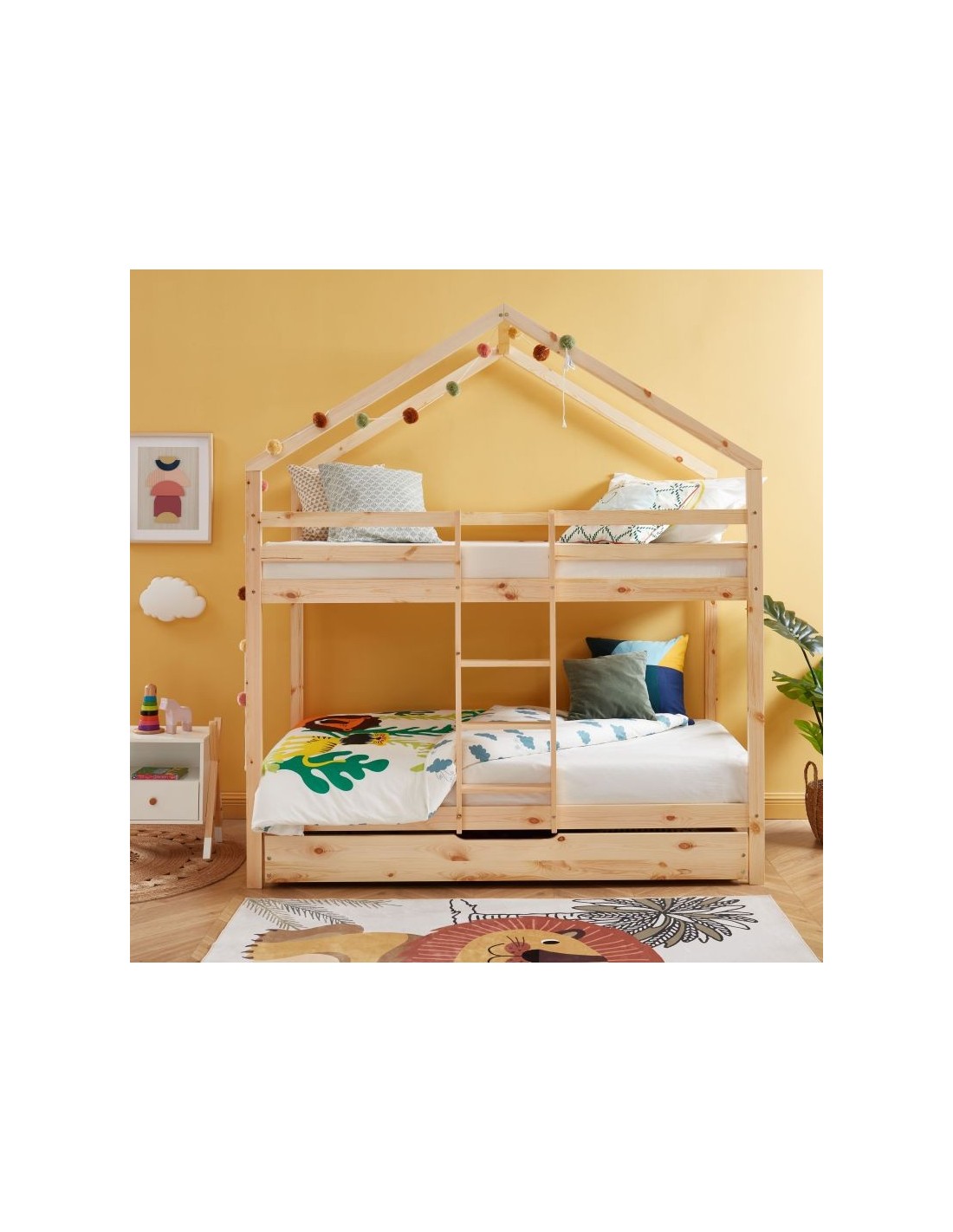 Transformez le sommeil de vos enfants en une véritable aventure avec notre Lit cabane superposé avec tiroir Caravane des Rêves Naturel 90x190, signé Laïba Kids. Ce lit bien plus qu'ordinaire saura inspirer leurs plus belles histoires tout en garantissant un sommeil sûr et confortable. Sa finition naturelle lui donne un aspect épuré et doux, qui se fondra dans n'importe quelle décoration de chambre. Le design amusant stimulera l'imagination de vos enfants, créant un espace de jeu unique pendant la journée et un lieu de repos apaisant la nuit.