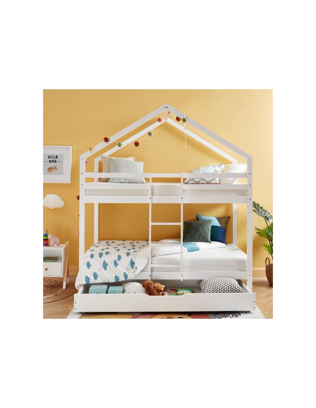 Caractéristiques sur le Lit cabane superposé avec tiroir Caravane des Rêves Blanc 90x190 :